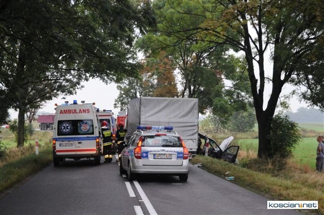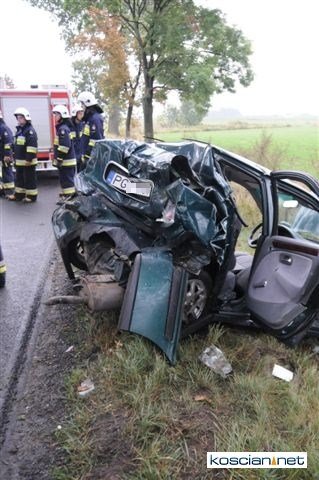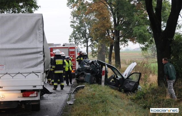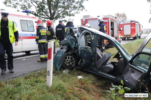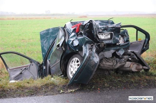 Lekarzom ze szpitala w Lesznie nie udało się uratować życia 26-letniemu pasażerowi osobówki. Mężczyzna zmarł w wyniku rozległych obrażeń wewnęrznych. Życie pozostałych poszkodowanych nie jest zagrożone.