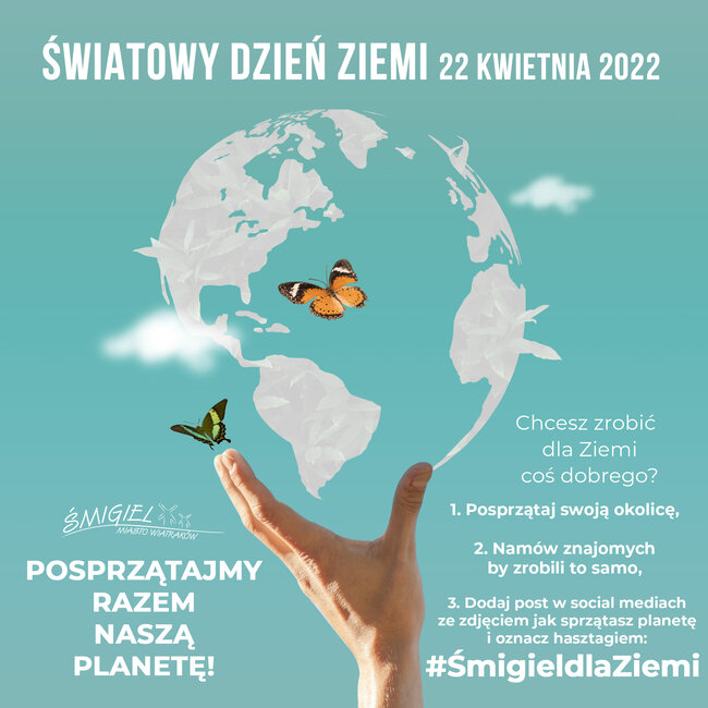 22 kwietnia obchodzimy Światowy Dzień Ziemi. Z tej okazji burmistrz Śmigla, po raz drugi ogłasza społeczną akcję sprzątania świata i zachęca mieszkańców gminy, by między 19 a 30 kwietnia wyruszyć w okolice swojego miejsca zamieszkania i posprzątać leżące śmieci.