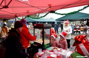 Święty Mikołaj, który w środę gościł na kościańskim Rynku, w sobotę dojechał kolejką wąskotorową do Śmigla. Wokół stacji rozłożyły się liczne stoiska z rękodziełem, lampkami i innymi artykułami świątecznymi. Nie zabrakło strefy gastronomicznej.
