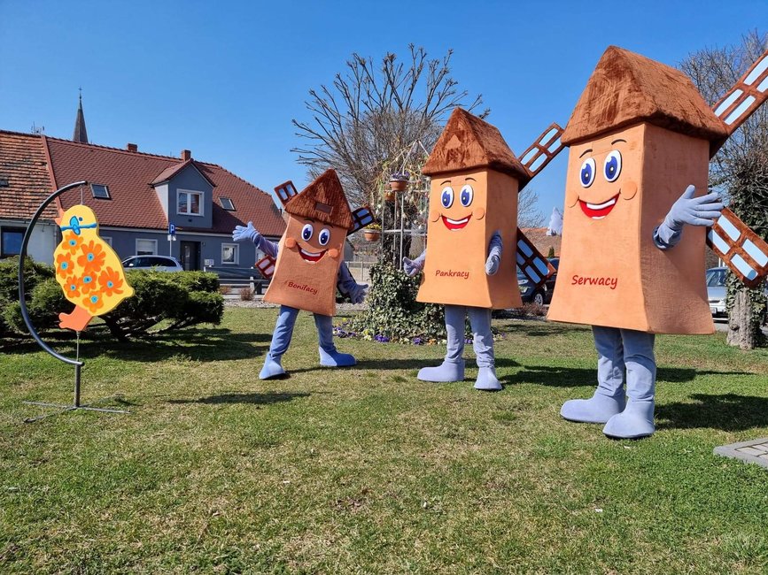 Trzy wiatraki: Serwacy, Pankracy i Bonifacy będą od teraz towarzyszyć mieszkańcom Ziemi Śmigielskiej podczas wydarzeń promujących gminę.