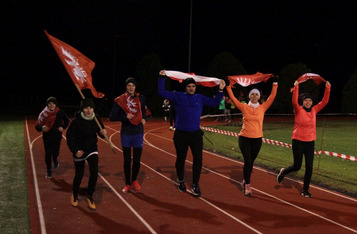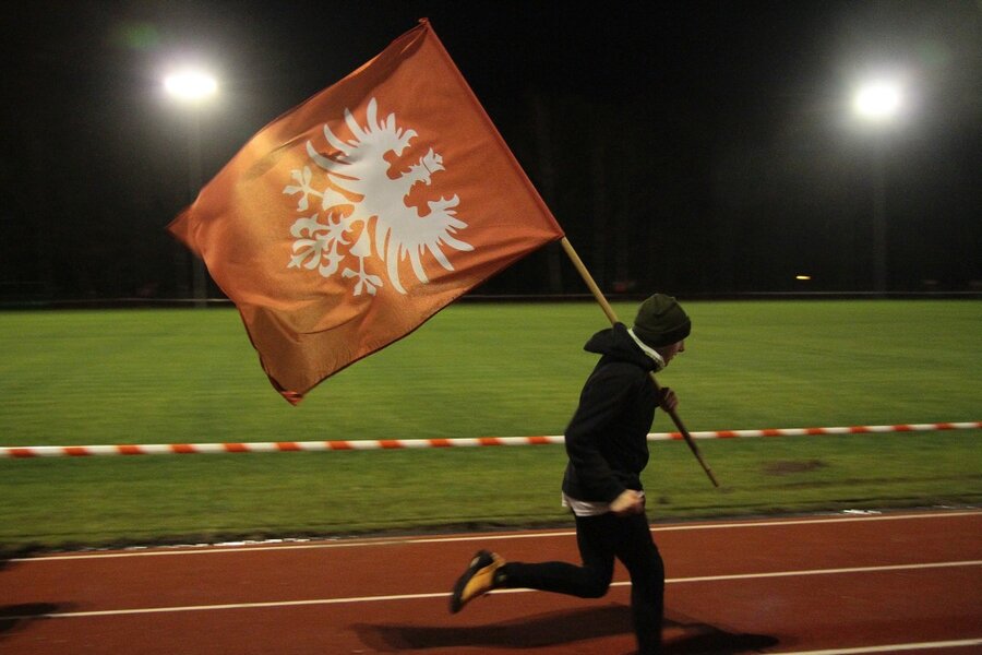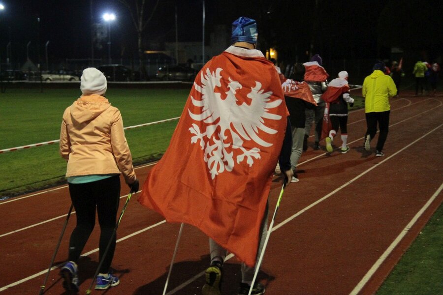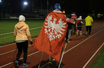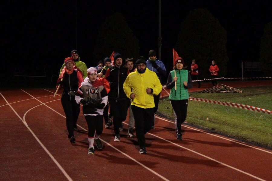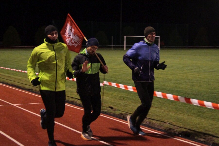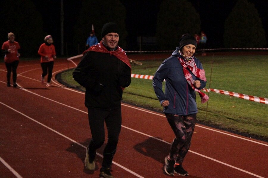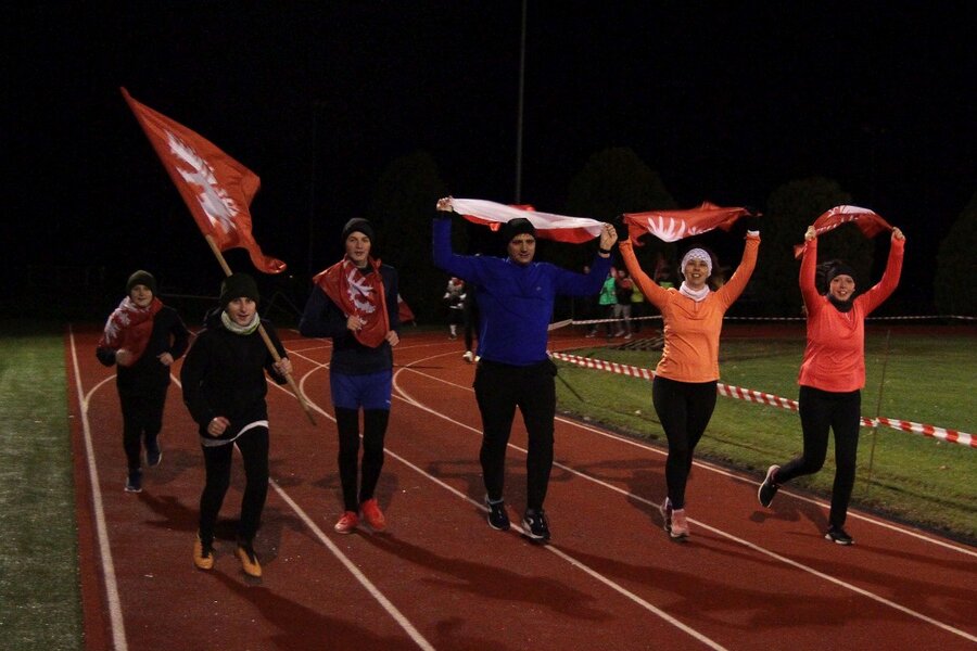 Wieczorem, na stadionie miejskim odbył się bieg z flagami, w którym udział wzięło około 50 osób. Na mecie każdy z uczestników otrzymał pocztówkę wydaną w ramach konkursu szkolnego z okolicznościową pieczątką upamiętniającą rocznicowe obchody.