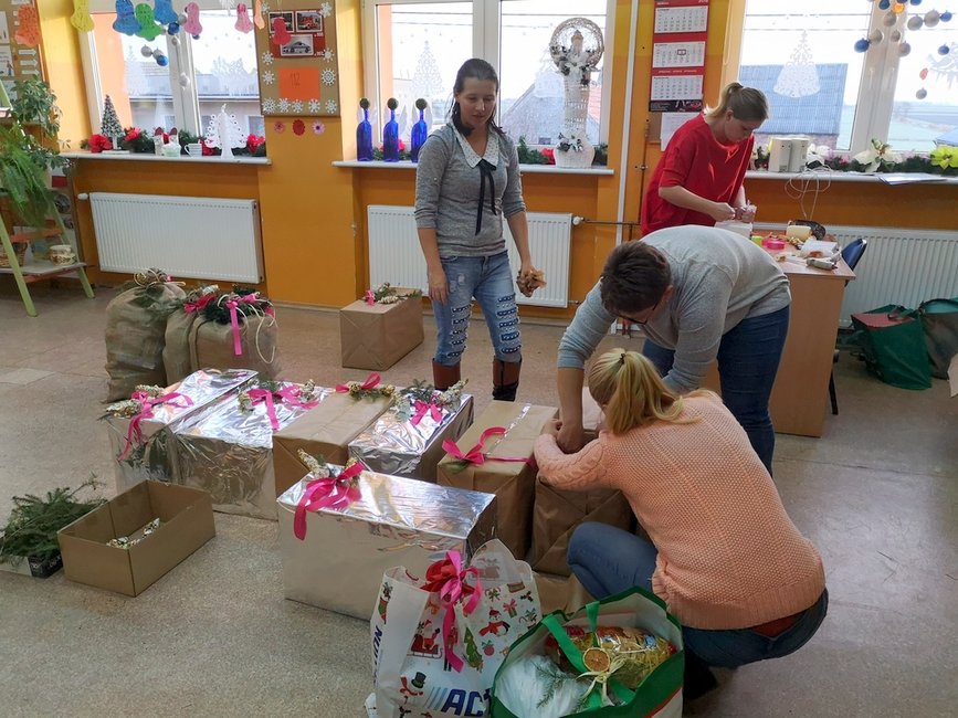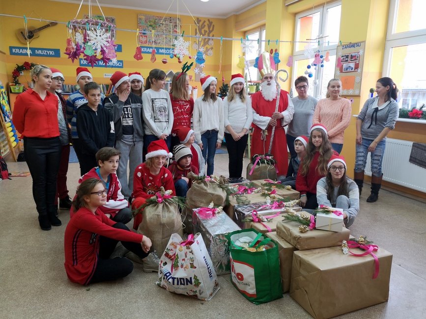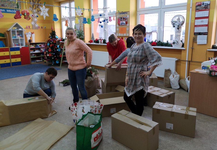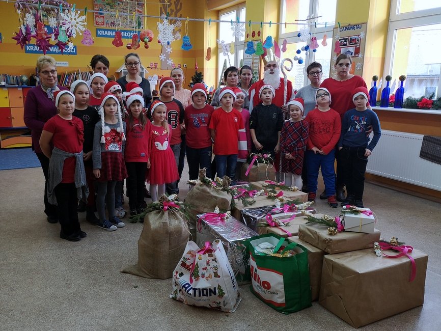 Rodzice, uczniowie, nauczyciele i pracownicy szkoły nie pozostali obojętni na potrzeby rodziny pani Barbary. Zbierane do 6 grudnia dary zostały pięknie zapakowane przez pracowite elfy czyli rodziców. Wszyscy okazali solidarność z potrzebującymi i swoim zaangażowaniem dali prawdziwy wyraz wrażliwości i gotowości do niesienia pomocy. Paczka została przekazana rodzinie 9 grudnia 2018r. w ramach ogólnopolskiego finału akcji „Szlachetna Paczka”. Obdarowani nie kryli wzruszenia i bardzo dziękowali za pomoc i okazane serce.