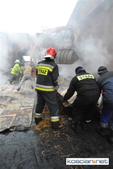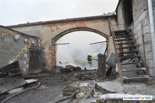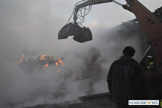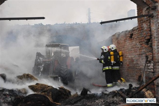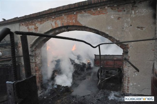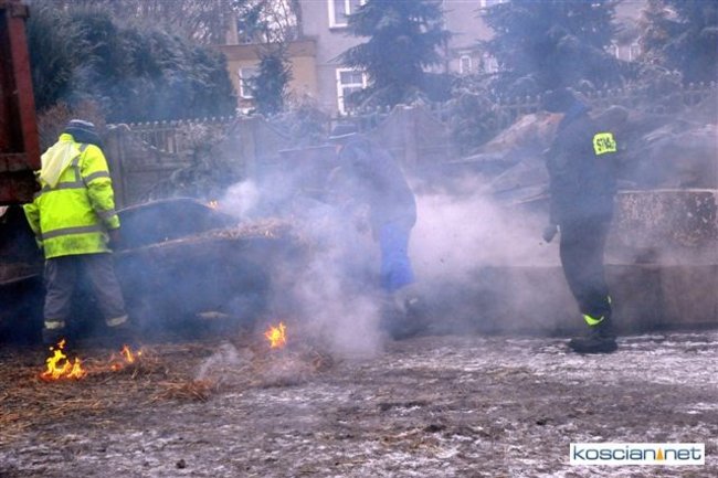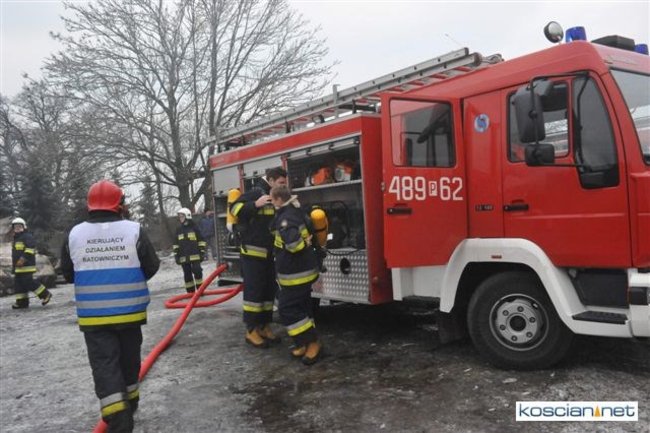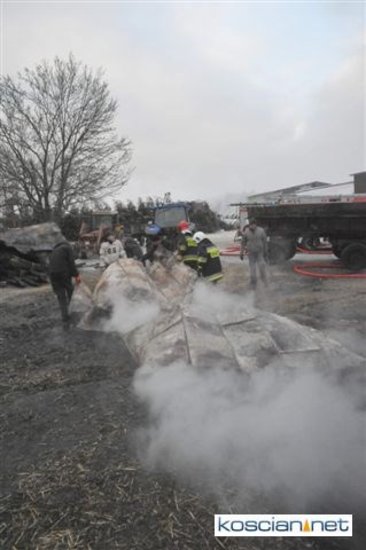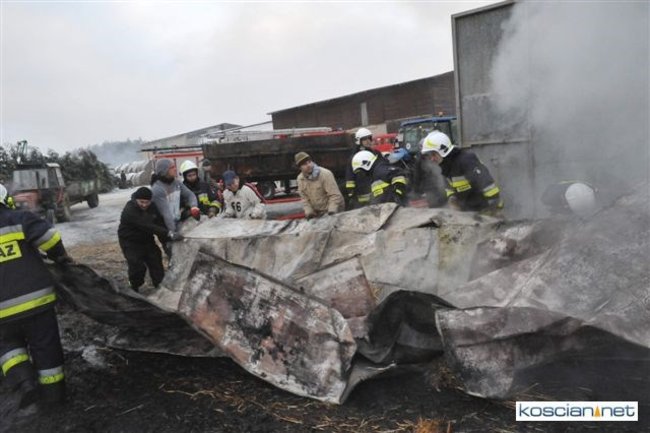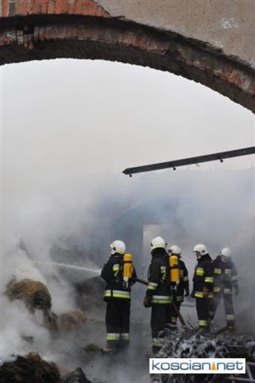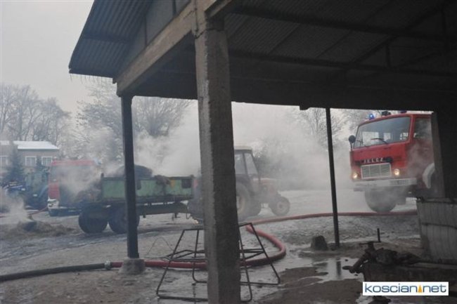 Pożar, który wybuchł przed południem, zajął część stodoły i chlewni. Do gaszenia ognia stawiło się kilkudziesięciu strażaków z szesnastu jednostek z powiatu kościańskiego oraz sąsiedzi. Akcję ratowniczą utrudniała pogoda i oblodzona droga, którą strażacy musieli dowozić wodę.