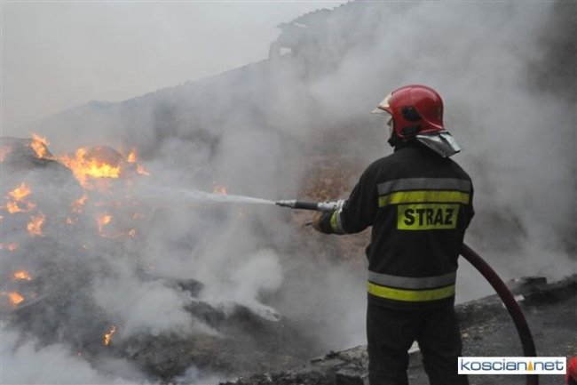 Kilkanaście zastępów straży pożarnej z powiatu kościańskiego gasiło pożar zabudowań gospodarskich we wsi Lubiń. Straty mogą wynieść kilkaset tysięcy złotych.