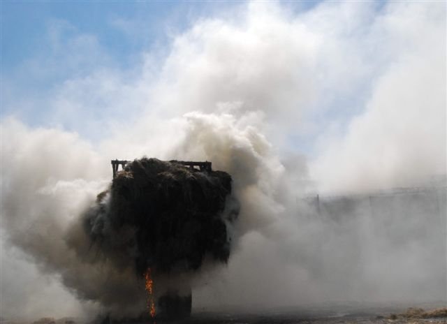 Dziś (15.05) przed południem w Nielęgowie w jednym z gospodarstwo rolnych zapaliły się garaże zamienione na stodołę, w której składowano siano. Z ogniem walczyło 9 zastępów strażaków: zawodowcy z Kościana i ochotnicy z Krzywinia, Racotu, Jerki, Kokorzyna, Kościana i Śmigla.