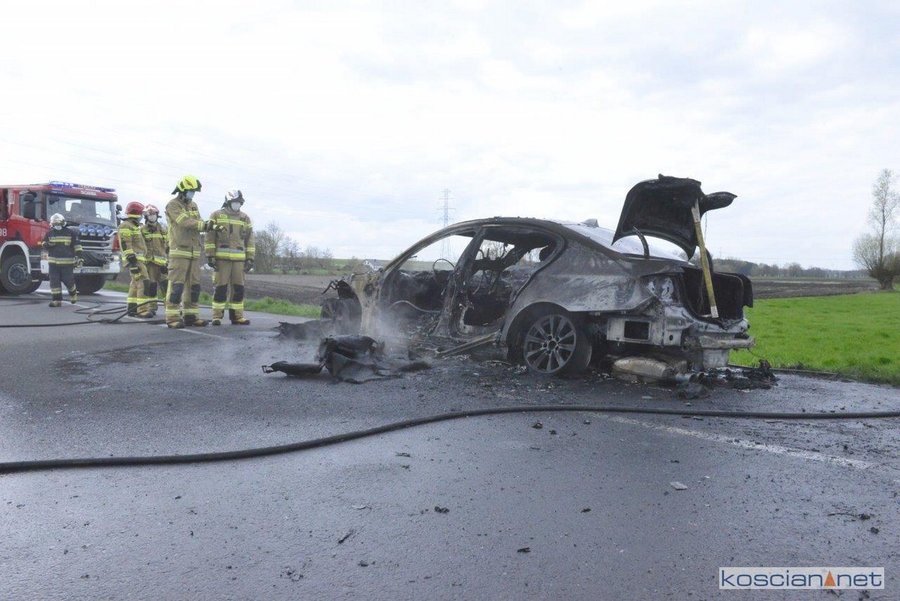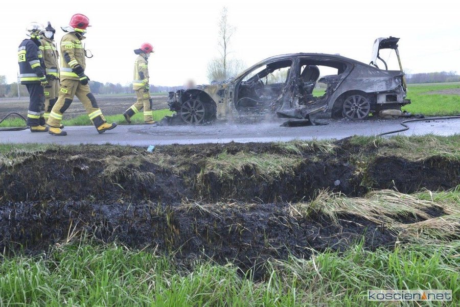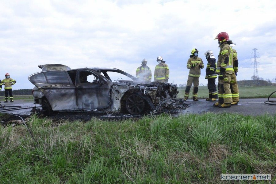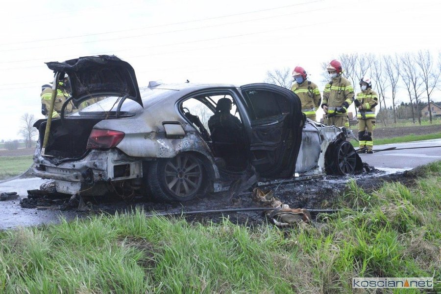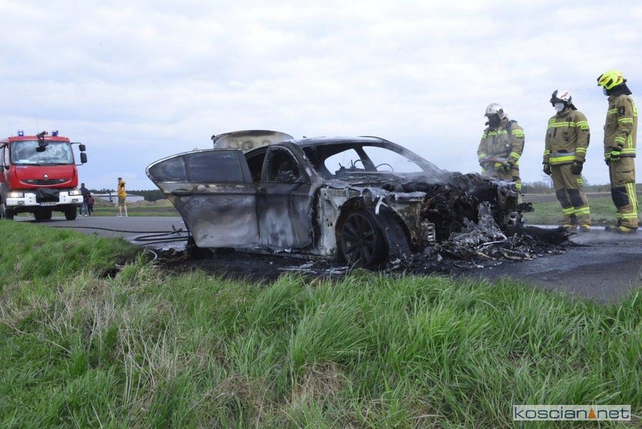 Na drodze z Przysieki Polskiej do Bruszczewa spłonęło auto marki BMW.
