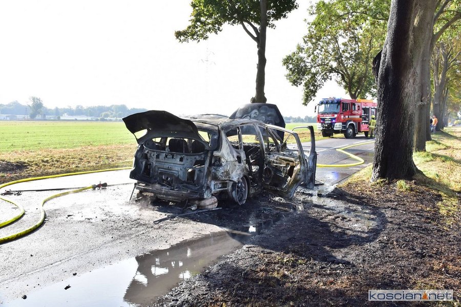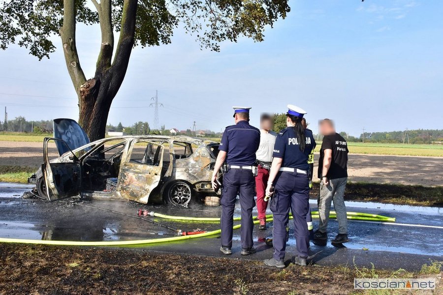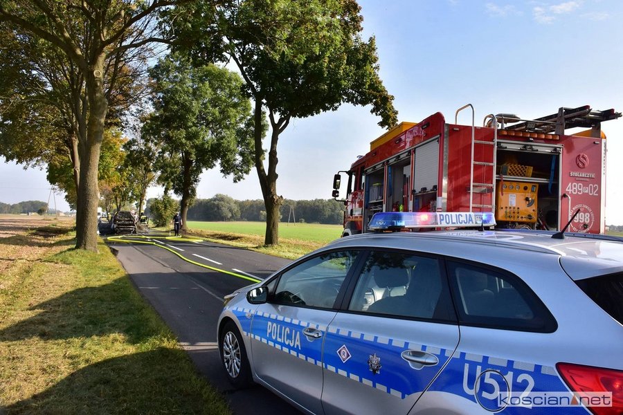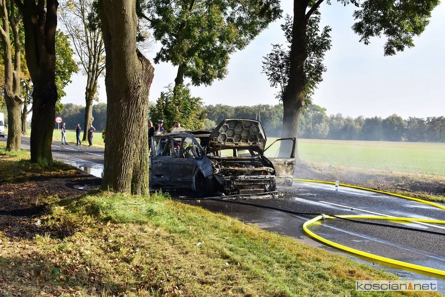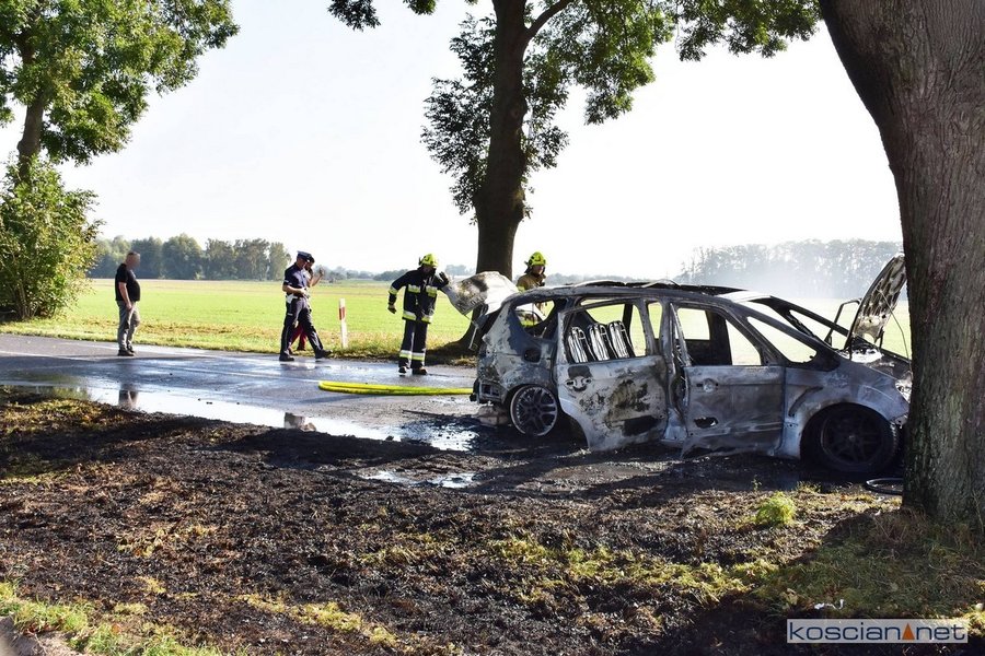 - O godzinie 14.08 zostaliśmy powiadomieni o pożarze samochodu osobowego na drodze Czempiń-Śrem. Na miejsce został zadysponowany jeden zastęp z OSP Czempiń. Gdy strażacy dotarli na miejsce cały pojazd był objęty ogniem – informuje Dawid Kryś, oficer prasowy Komendy Powiatowej Państwowej Straży Pożarnej w Kościanie. - Fordem s-max podróżowały cztery osoby. Wszystkie zdążyły bezpiecznie opuścić pojazd i podjęły próbę gaszenia ognia, niestety pożar bardzo szybko się rozprzestrzeniał. Pojazd doszczętnie spłonął.