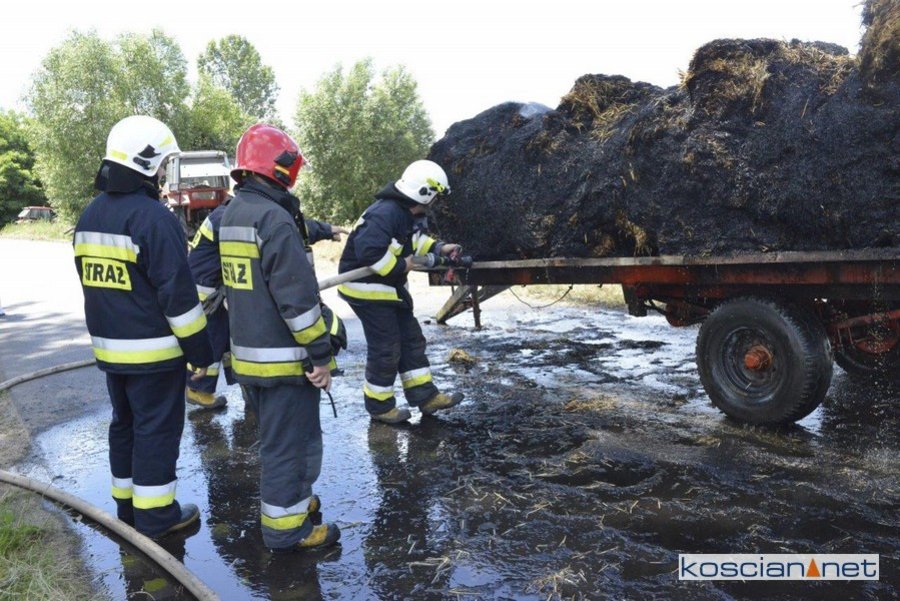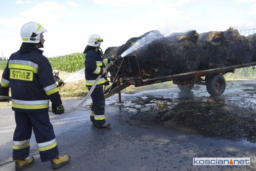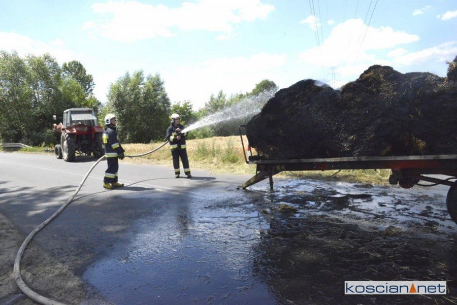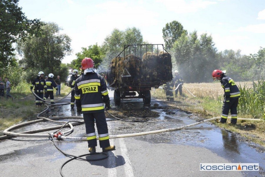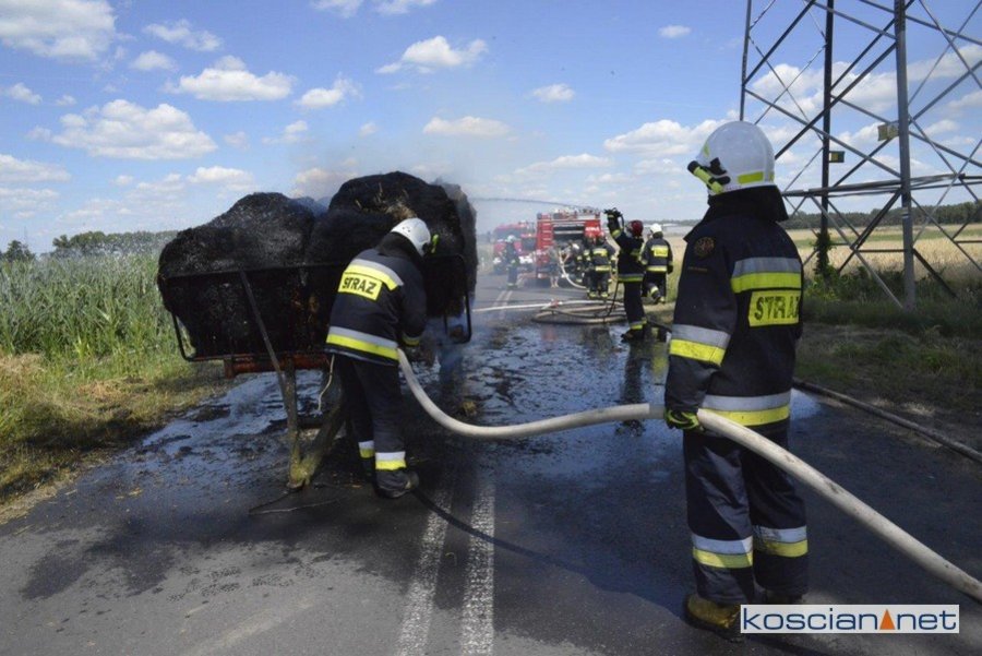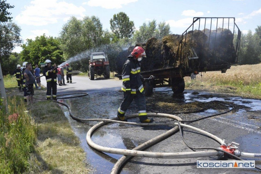 Do pożaru doszło we wtorek, 14 lipca, około godziny 13. Zapaliły się przewożone baloty słomy. Po zauważeniu ognia traktorzysta odłączył przyczepę i odjechał ciągnikiem na bezpieczną odległość. Do gaszenia ognia zadysponowano strażaków z PSP Kościan oraz Ochotnicze Straże Pożarne ze Starego Bojanowa i Czacza. Spłonęło dziesięć balotów słomy. Nie ustalono jeszcze przyczyny pożaru.