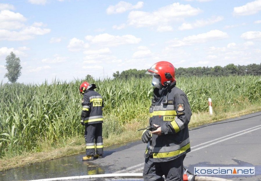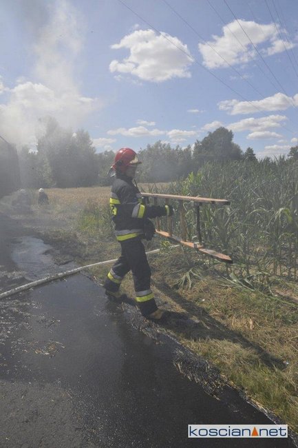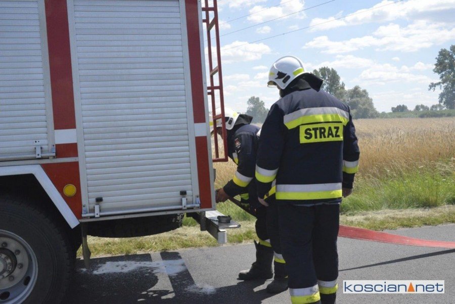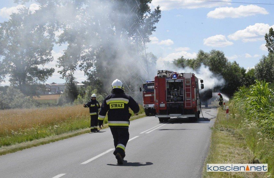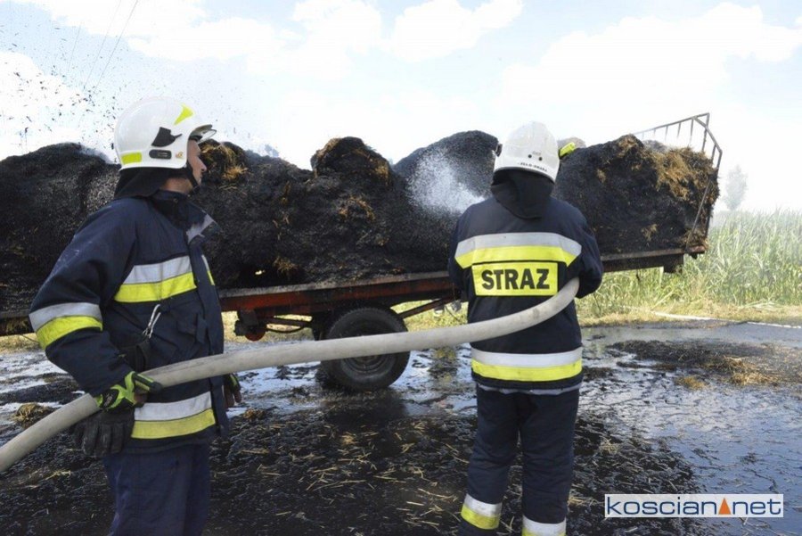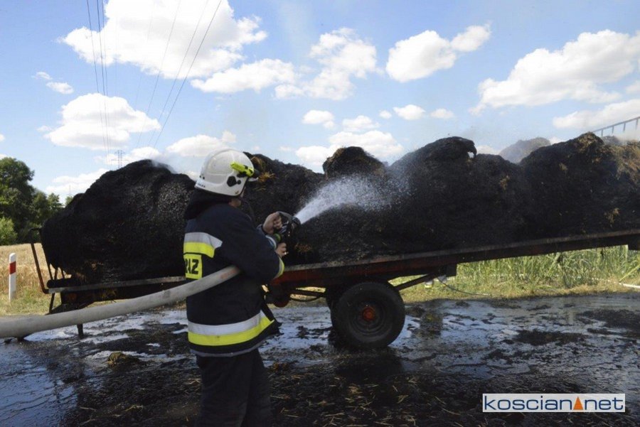 Do pożaru doszło we wtorek, 14 lipca, około godziny 13. Zapaliły się przewożone baloty słomy. Po zauważeniu ognia traktorzysta odłączył przyczepę i odjechał ciągnikiem na bezpieczną odległość. Do gaszenia ognia zadysponowano strażaków z PSP Kościan oraz Ochotnicze Straże Pożarne ze Starego Bojanowa i Czacza. Spłonęło dziesięć balotów słomy. Nie ustalono jeszcze przyczyny pożaru.