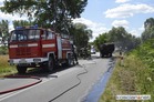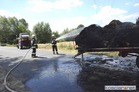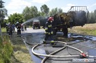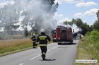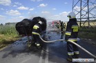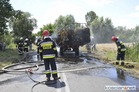 Na drodze z Przysieki Polskiej do Bruszczewa zapaliły się przewożone na przyczepie baloty słomy.