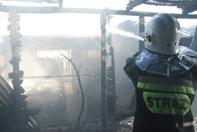 Około godziny 17 zapalił się pierwszy z drewnianych garaży, a ogień szybko przeniósł się na dwa sąsiednie garaże. W jednym z nich spłonął seat ibiza i dwa rowery.Szybka akcja strażaków uchroniła przed ogniem sąsiednie drewniane zabudowania. Prawdopodobną przyczyna pożaru było zaprószenie ognia.
