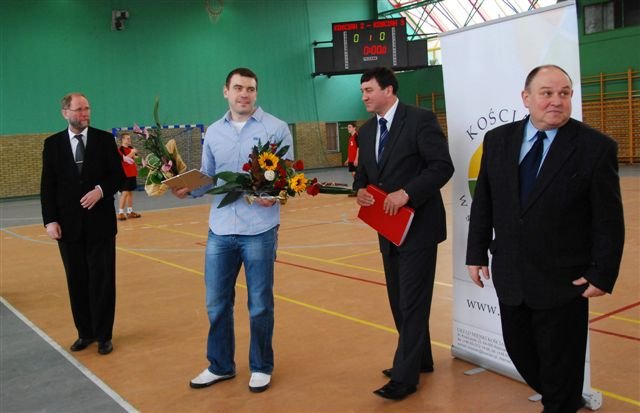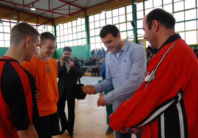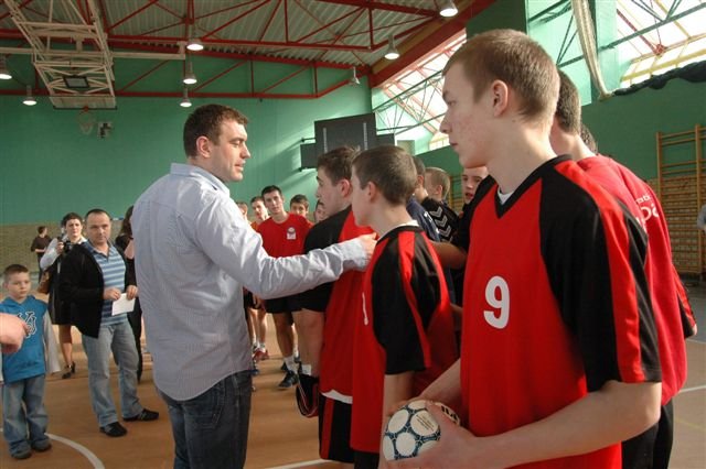Reprezentant Polski dał sygnał do rozpoczęcie meczu piłki ręcznej pomiędzy szkolnymi drużynami. Na przeciw siebie stanęły zespoły z kościańskiej ,,dwójki” i ,,trójki”. Gdy piłkarze toczyli na boisku zacięty bój, Bartosza Jureckiego otoczyli rządni autografów młodzi kibice. (h)