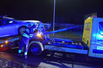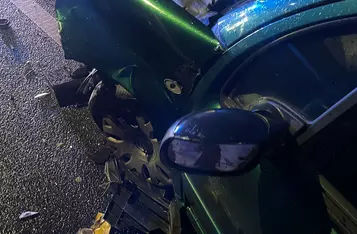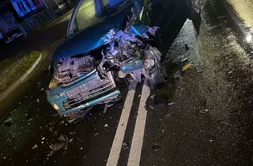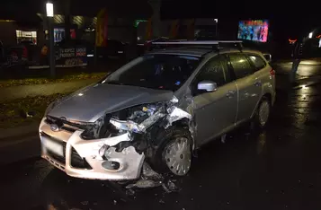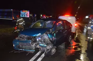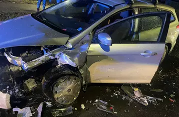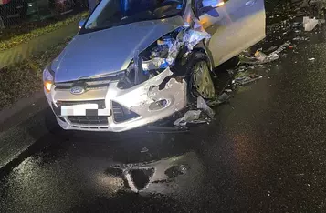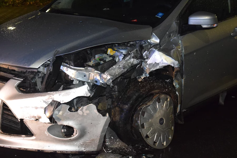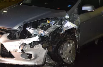 Kierowca citroena, skręcając na posesję, nie ustąpił pierwszeństwa przejazdu prawidłowo jadącemu fordowi i doprowadził do zderzenia pojazdów.