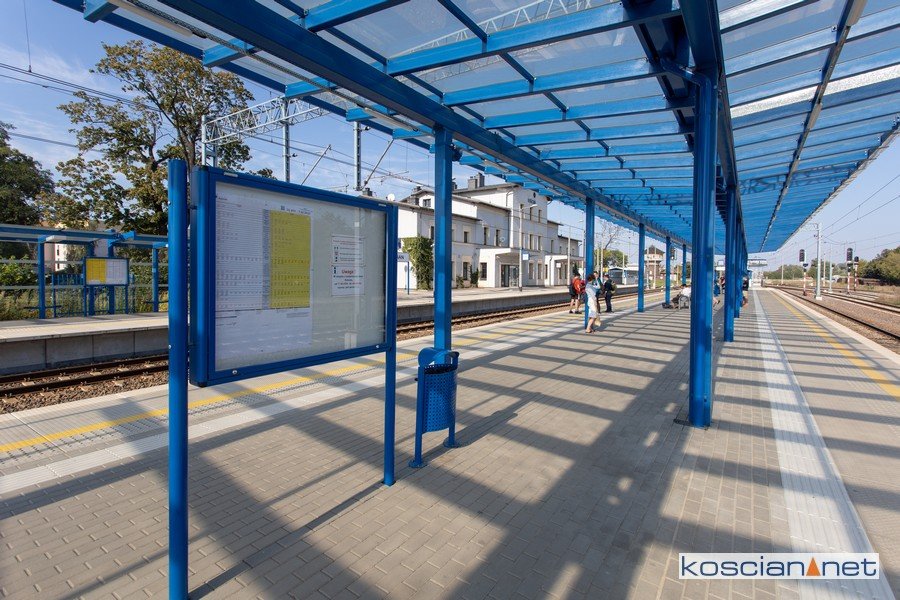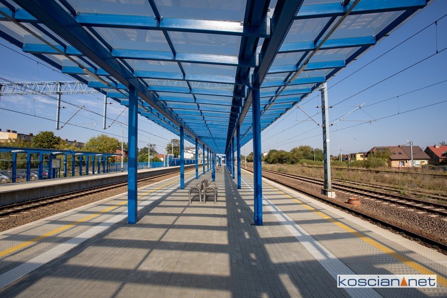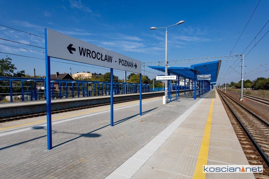 W ramach inwestycji całkowicie odmieniła się kościańska stacja. Na peronie drugim stanęło szklane zadaszenie podtrzymywane przez stalowe podpory w kolorze niebieskim. Podróżni mogą schować się przed opadami pod dwiema, 80-metrowymi wiatami. Przed słońcem ich jednak nie uchronią. Także na peronie pierwszym stanęło zadaszenie. Oba perony podwyższono do 76 cm, co ułatwia wsiadanie do pociągów. Ich krawędzie mają antypoślizgową nawierzchnię. Na wiatach zamontowano wyświetlacze systemu informacji, a pod nimi zamontowano tablice z drukowanym rozkładem jazdy. Całość dopełniają nowe ławki na peronie drugim i siedziska na peronie pierwszym. Oba perony zostały wydłużone i przesunięte w kierunku Leszna. Bezpieczne połączenie pomiędzy peronami zapewnia przebudowane przejście podziemne. Można się do niego dostać schodami oraz dwiema windami.