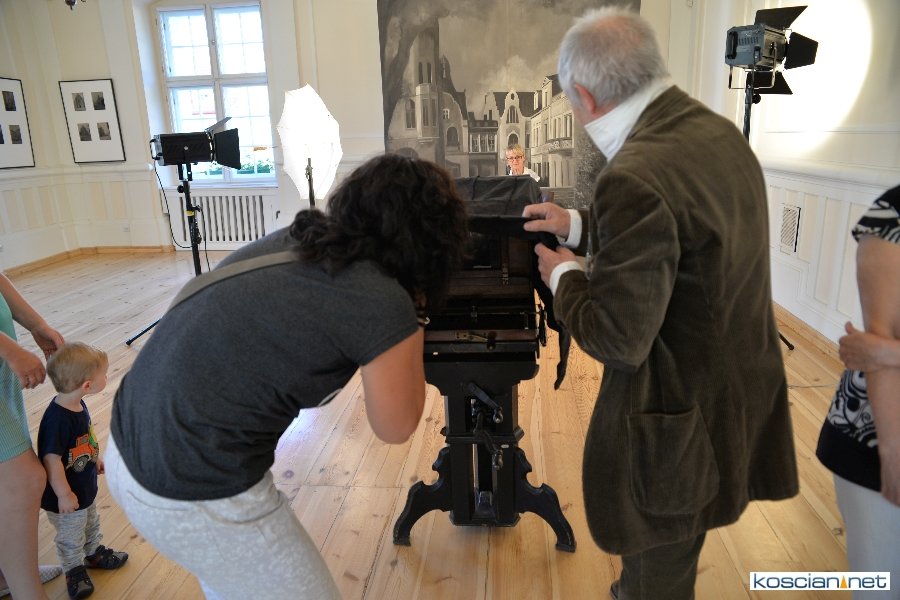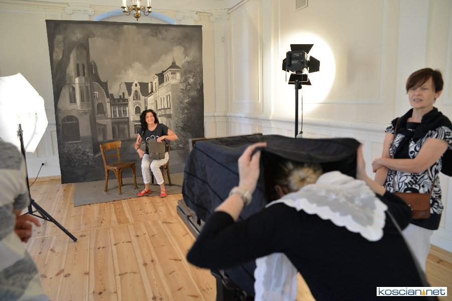 Osoby, które odwiedziły w sobotę kościańskie Muzeum Regionalne im. dra Henryka Florkowskiego miały okazję pozować do zdjęcia wykonywanego stuletnim aparatem wprost na papierze światłoczułym. Aby odtworzyć klimat starego atelier Kachna Olejniczak – Drobner przygotowała malowane tło. Fotografie wykonywał i wywoływał Stefan Drobner. Chętnych na taką pamiątkę nie brakowało.