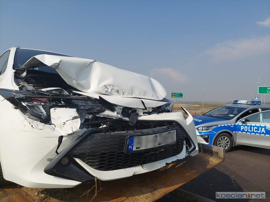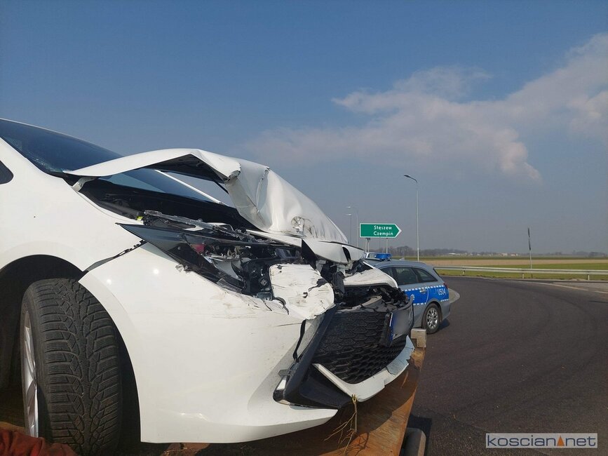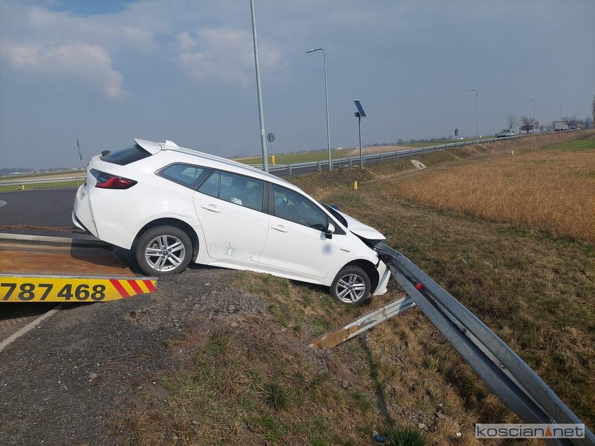 Do wypadku doszło w środę, 16 marca, po godzinie 11. na rondzie łączącym drogę do węzła Kościan Północ z obwodnicą Kościana. Jak wynika z pierwszych ustaleń, jadący od strony drogi ekspresowej, 69-letni mieszkaniec Łodzi, stracił przytomność i wjechał w bariery ochronne. Mężczyznę przewieziono do szpitala na badania.