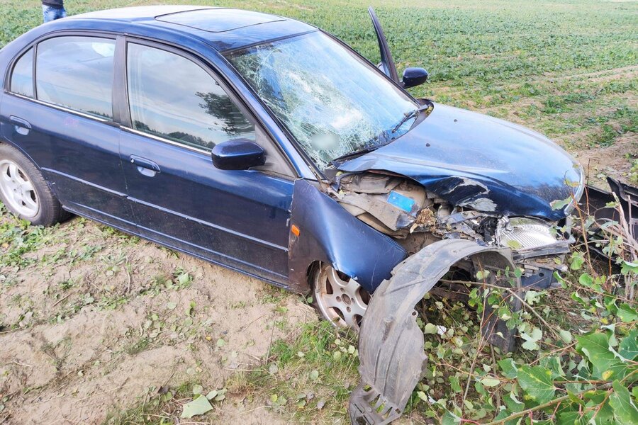Do zdarzenia doszło w czwartek, 13 października, po godzinie 14.00, w pobliżu Wyskoci. Kierująca honda, 59-latka z gminy Kościan, nie dostosowała prędkości do warunków na drodze w wyniku czego straciła panowanie nad samochodem, zjechała z drogi i uderzyła w drzewo. Kierującą przewieziono do szpitala na badania. Za spowodowanie kolizji kobietę ukarano mandatem.