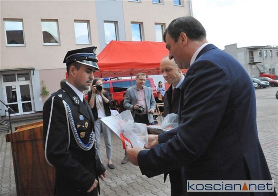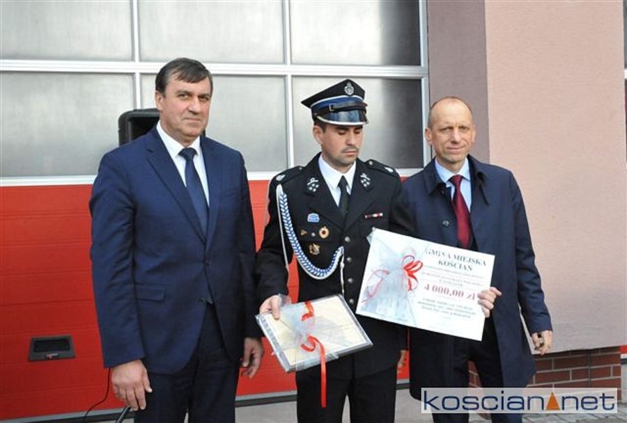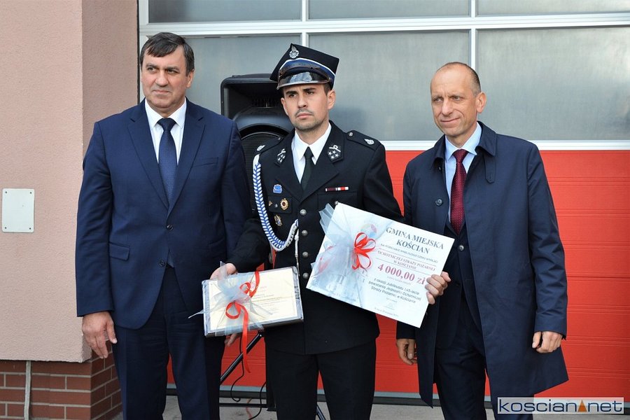 Burmistrz Kościana, Piotr Ruszkiewicz złożył na ręce Prezesa OSP Kościan dh Huberta Bartkowiaka podziękowania za codzienną służbę. Ponadto przekazał jednostce OSP czek na 4.000 zł, ufundowany przez samorząd Kościana. Zaproszeni goście trzymali publikację „145 lat ochrony przeciwpożarowej w Kościanie” autorstwa ml. bryg. Roberta Natunewicza i kpt. Przemysława Ruskowiaka, której wydanie sfinansowano ze środków samorządów miejskiego i powiatowego oraz KP PSP w Kościanie.
