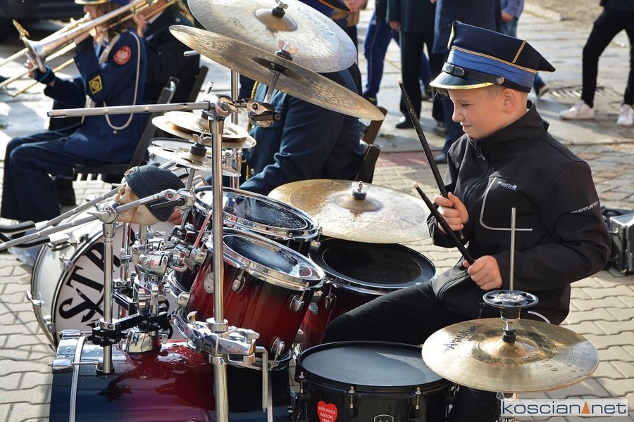 Uroczysta zbiórka z okazji 145-lecia ochrony przeciwpożarowej w Kościanie.
