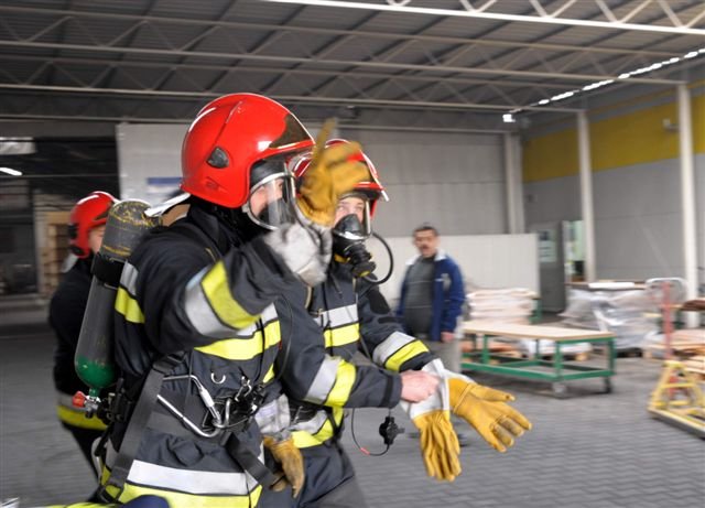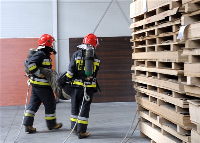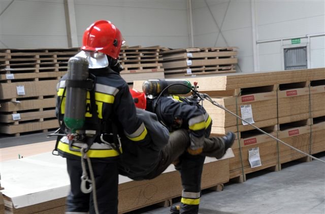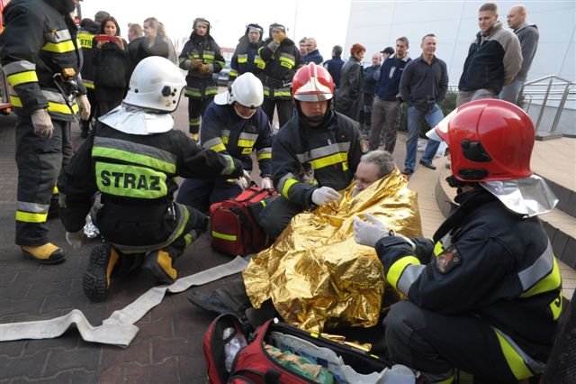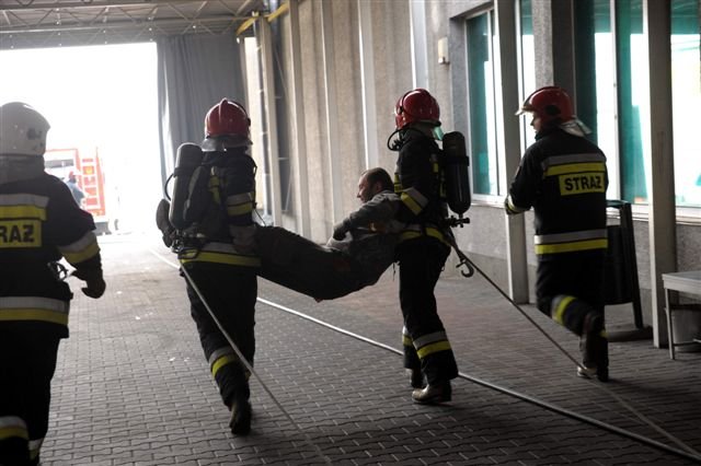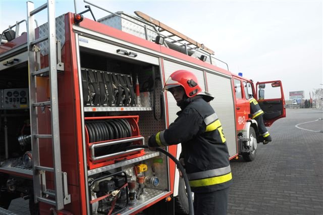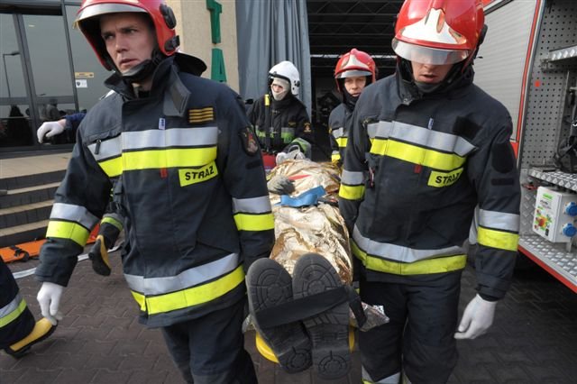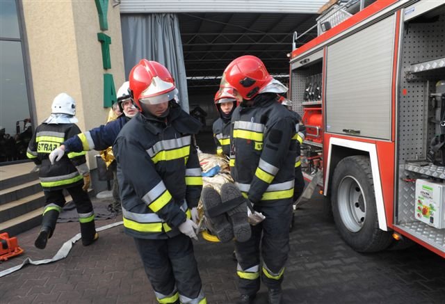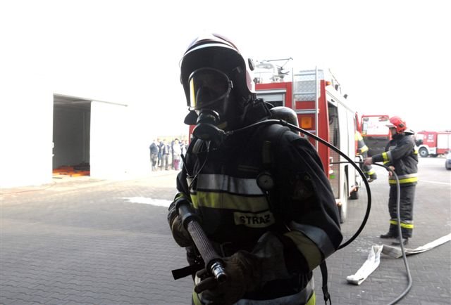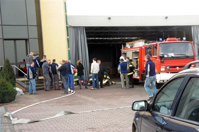 Zawodowi strażacy i druhowie z OSP przeprowadzili w kościańskiej firmie Eko-Płyta ćwiczenia, podczas których gaszono symulowany pożar magazynu i uwalniano uwięzionych w płonącym budynku pracowników. Dzięki takim ćwiczeniom strażacy poznają teren dużych firm, a ich pracownicy przypominają sobie zasady ochrony przeciwpożarowej.