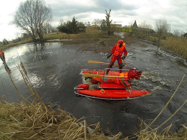 - Jest to specjalne urządzenie ratownicze katamaran systemu woda – lód. Dwa pływaki połączone pomostem wyposażone są w metalowe płozy co pozwala na poruszanie się po lodzie. Z kolei pływanie w wodzie umożliwia silnik spalinowy o mocy 5 KM. Całość bez problemu z wody może przemieścić się na lód i odwrotnie, transportując poszkodowanego w bezpieczne miejsce - wylicza Andrzej Ziegler, zastępca komendanta kościańskiej straży.