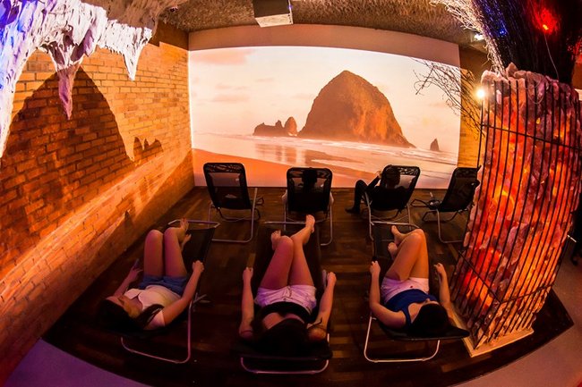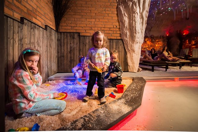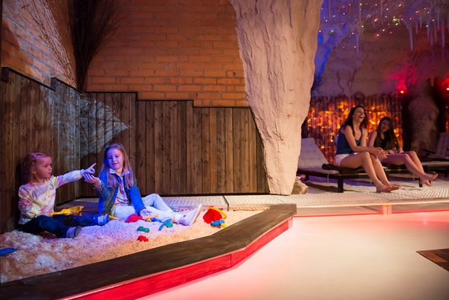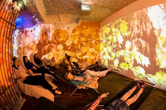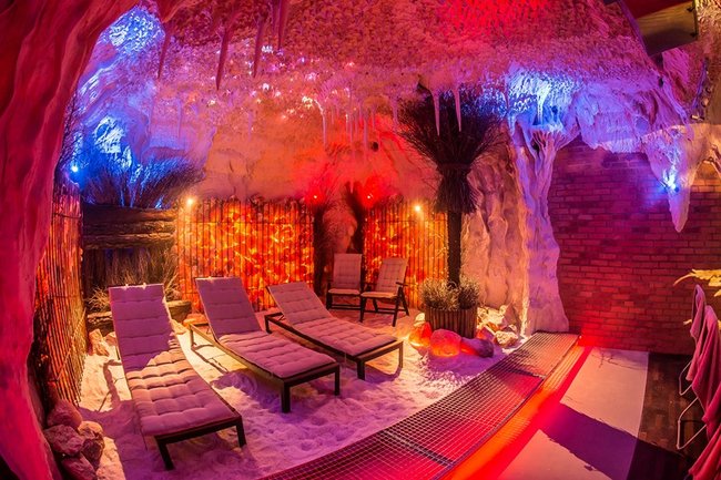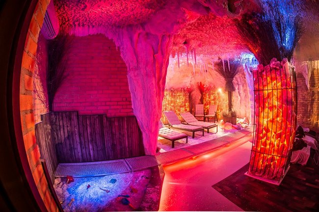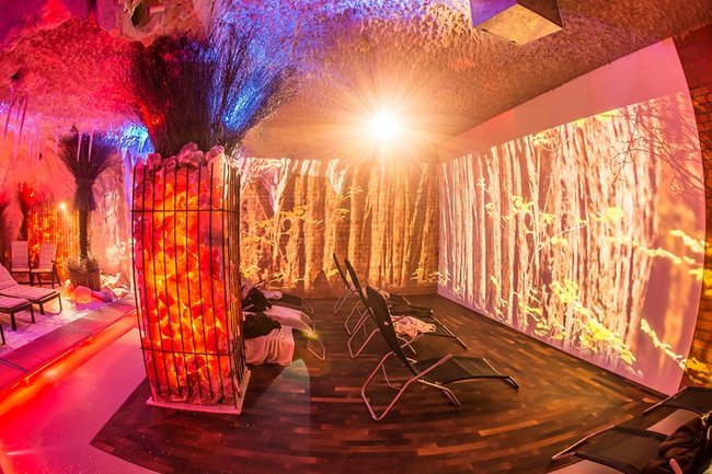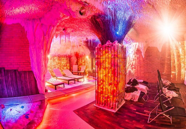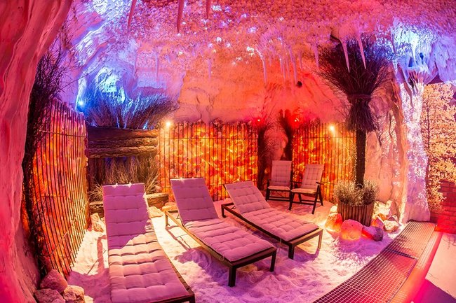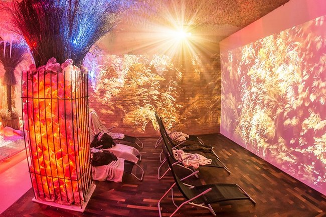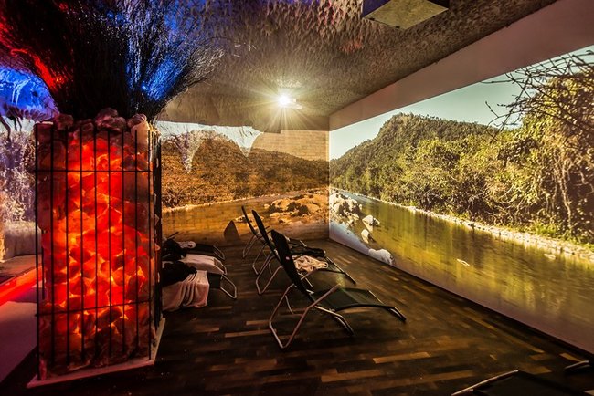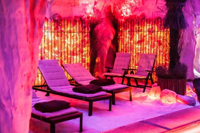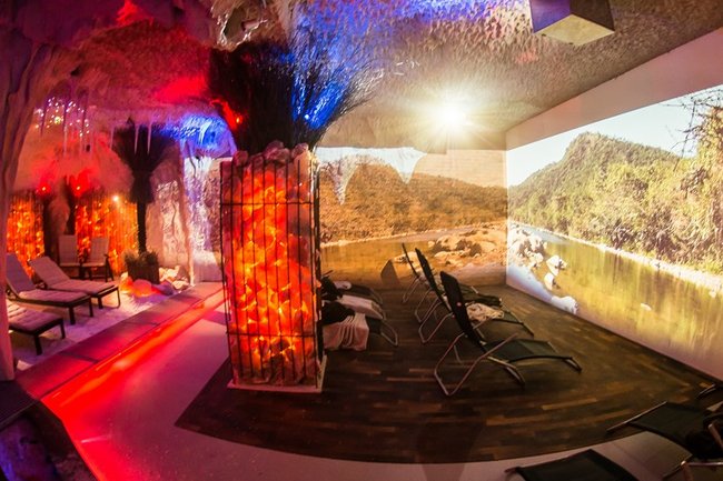 Grota solna to miejsce relaksu w mikroklimacie zbliżonym do morskiego. Trwający 45 minut seans umilać będą pokazy multimedialne przenoszące wypoczywających na łono natury w różnych zakątkach świata. Wewnątrz groty znajdują się leżaki oraz piaskownica wypełniona solą. Wystrój uzupełniają podświetlane duże bryły pakistańskiej soli.