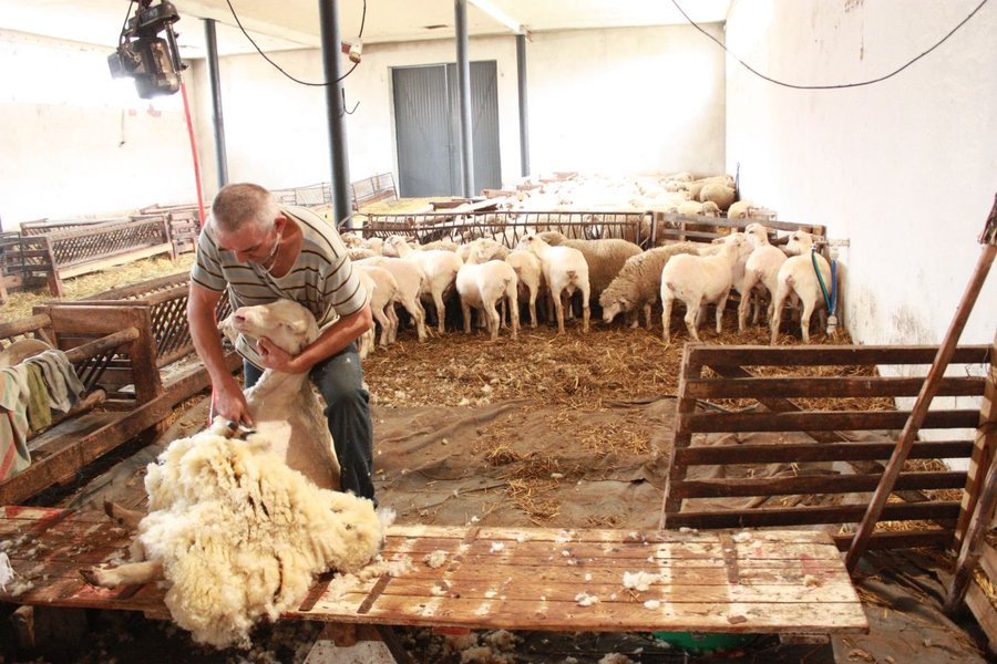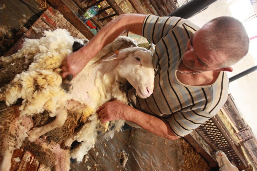 Majchrzak jest jednym z owczarzy RSP i członkiem spółdzielni. Pracuje w RSP od 40 lat. Sfotografowaliśmy go akurat, gdy ciął swoje owce – czyli z powierzonego mu stada.