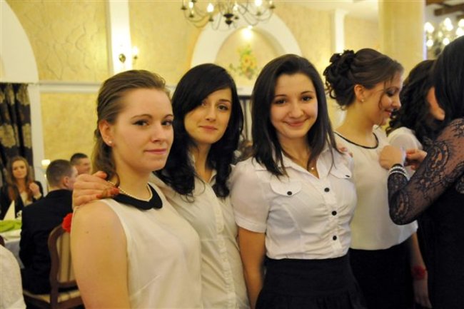 moja opinia i kilka moich spostrzeżeń: 1. Miło, ze większość dziewczyn postawiła na ponadczasową klasykę biel i czerń, z błyszczącymi dodatkami. 2. Dziewczyna w białej bluzce ze zdj.37 - loki, włosy ekstra 3. Dyrektorka prezentowała się bardzo elegancko i wieczorowo a nie dziadowsko jak to czasem grono pedagogiczne ma w zwyczaju... 4. Studniówkę mieliście nie wiem gdzie ale sala baaardzo przyjemna, ja swoja miałam parę lat temu w Kolbergu i porównując, to Kolberg to dno..