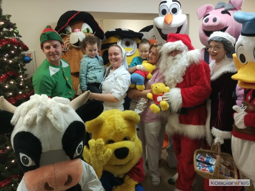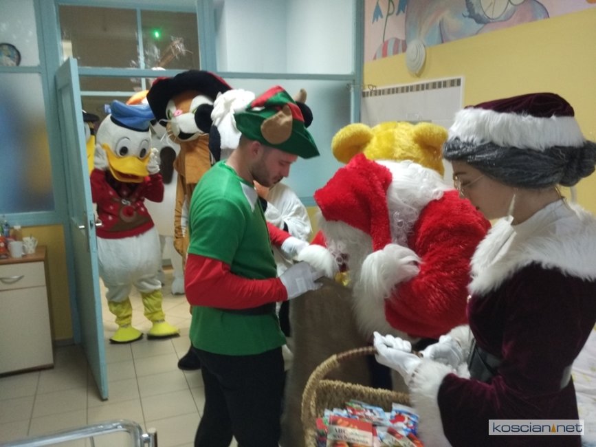 Postaci z Konwoju Świętego Mikołaja odwiedziły oddziały dziecięce szpitali w Kościanie i Gostyniu oraz Dom Dziecka w Bodzewie.