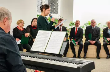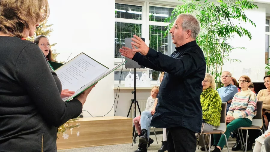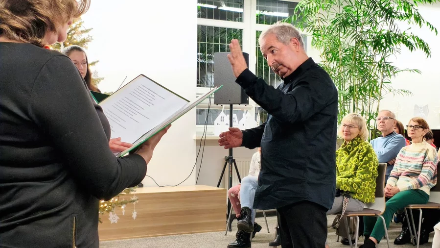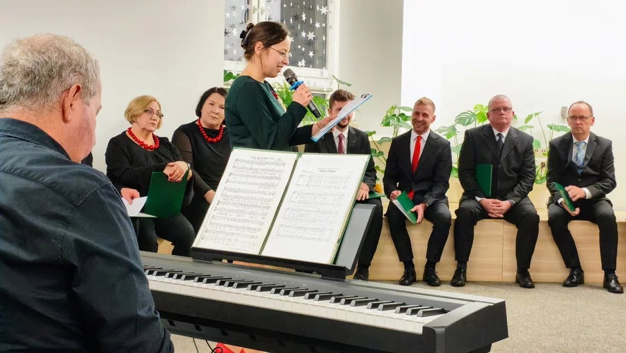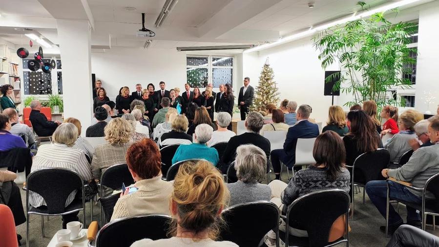 W wypełnionej po brzegi czytelni kościańskiej biblioteki wystąpił Chór Kameralny pod batutą Grzegorza Szumnarskiego. Magia miejsca sprawiła, że kolędy i pastorałki śpiewała także publiczność.