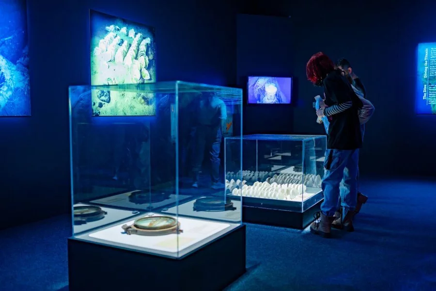 Wrak Titanica spoczywa dziś na głębokości 3800 metrów w wodach Północnego Atlantyku. To właśnie stamtąd pochodzą eksponaty prezentowane na wystawie - ponad 170 autentycznych artefaktów, od dużych elementów konstrukcyjnych po osobiste przedmioty pasażerów: biżuterię, zegarki, listy, walizki czy dokumenty. Wśród nich znajdują się również elegancka porcelana, srebrne sztućce i naczynia stołowe – niemi świadkowie codziennego życia na pokładzie. Artefakty te zostały wydobyte od lat 80. XX wieku przez firmę RMS Titanic, Inc., jedyną instytucję na świecie uprawnioną do ich pozyskiwania i konserwacji.