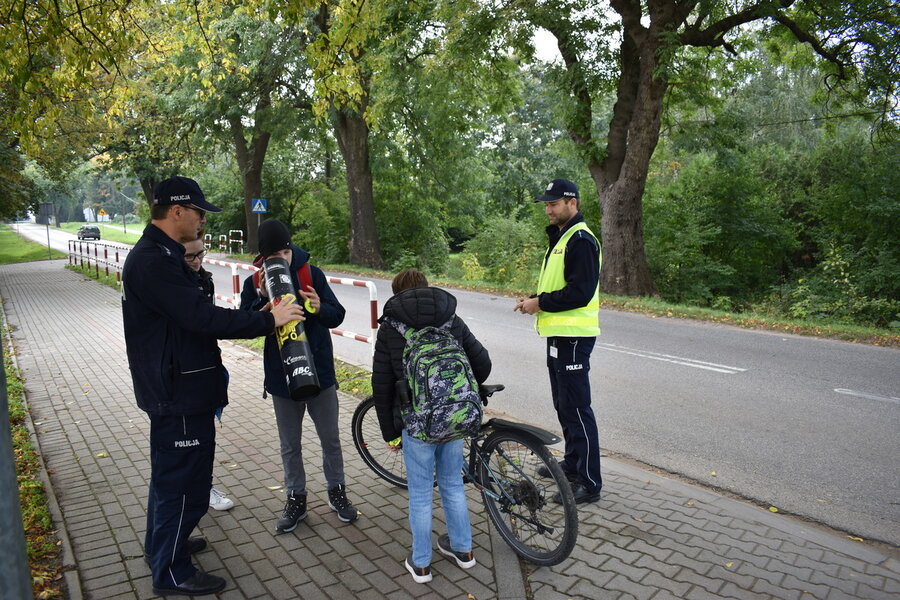 Podczas akcji „Świeć przykładem” policjanci Zespołu ds. Nieletnich Komendy Powiatowej Policji w Kościanie prowadzali działania profilaktyczne zachęcając do noszenia elementów odblaskowych także w obszarze zabudowanym na nieoświetlonych lub słabo oświetlonych odcinkach dróg.