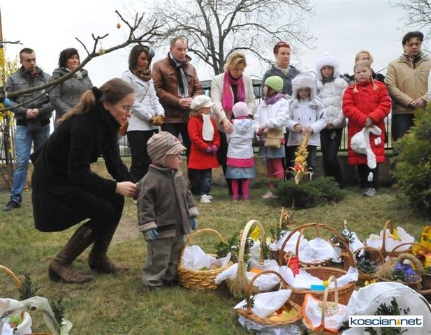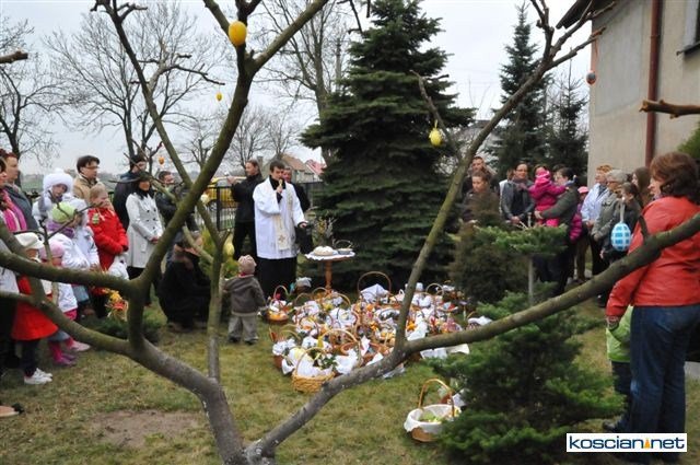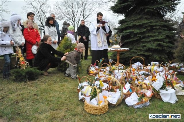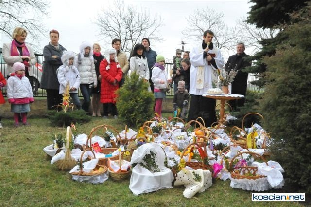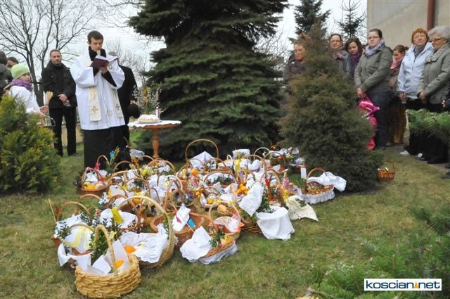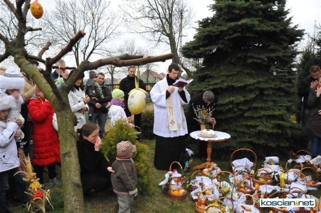 Fotoreporter uwiecznił święcenie pokarmów we wsi Kiełczewo, którego dokonał ks. Wojciech Wasiak, wikariusz parafii pw. Ducha Świętego w Kościanie.
