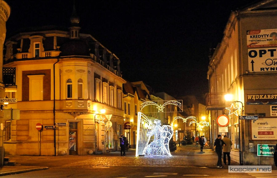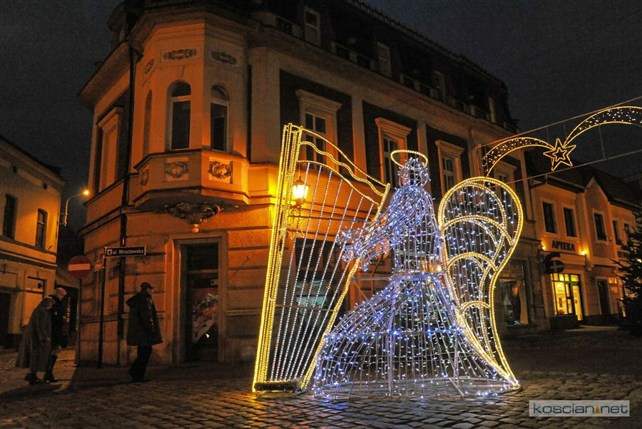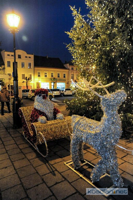 Wysoką na dziesięć metrów choinkę na kościańskim rynku przystrojono siedmioma tysiącami światełek. Tuż obok niej pojawił się zaprzęg Świętego Mikołaja. Świątecznie prezentuje się także deptak, na którym anioł gra na harfie. Lampki zdobią także mosty i ronda. Święta coraz bliżej...
