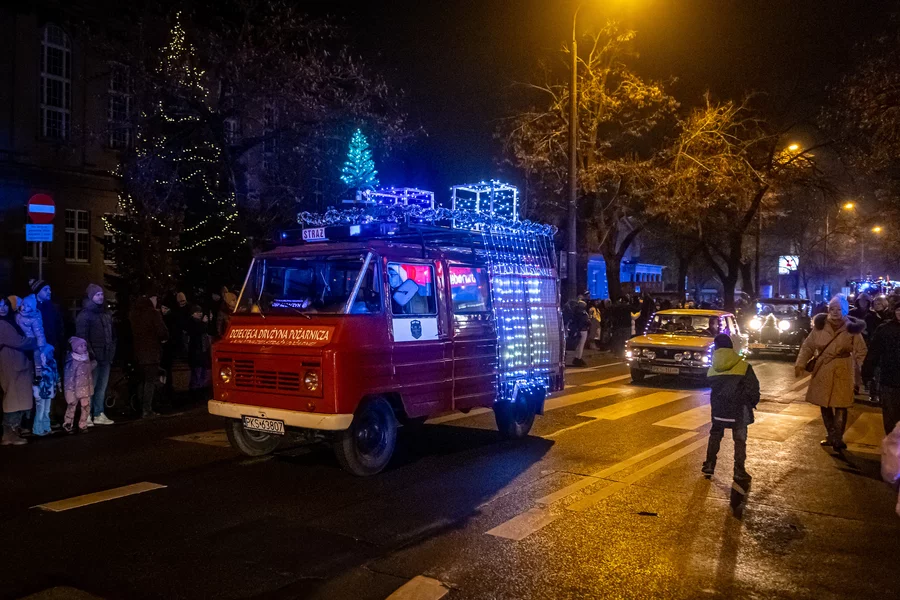Duże zainteresowanie wzbudzała także kolumna bogato iluminowanych samochodów osobowych, motocykli, wozów strażackich, którą zamykał traktor i dźwig.