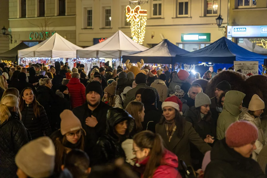 Na gości jarmarku czekały różnorodne stoiska gastronomiczne oraz szeroka oferta rękodzieła, dekoracji i świątecznych upominków. Przed ratuszem odbywały się prezentacje artystyczne, a w plenerowym kinie można było obejrzeć film „Grinch. Świąt nie będzie”.