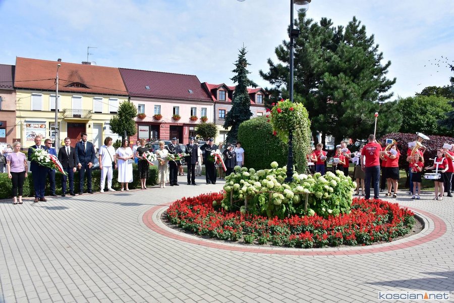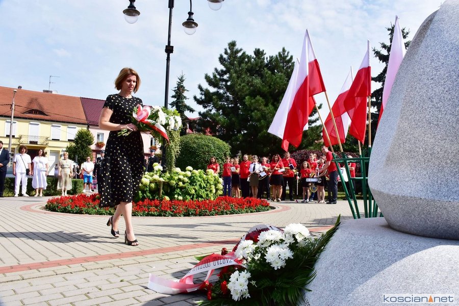 W południe przedstawiciele samorządów: miasta Kościana, powiatu kościańskiego i gminy Kościan, delegacje organizacji i stowarzyszeń złożyli wiązanki kwiatów pod Pomnikiem Obrońców Ojczyzny, a następnie na Placu Niezłomnych przy tablicy upamiętniającej setną rocznicę zwycięskiej Bitwy Warszawskiej.