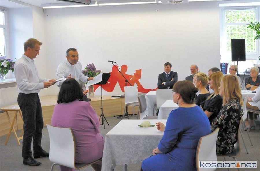 Dyrektor kościańskiej biblioteki Jadwiga Gidel z rąk burmistrza Kościana Michała Jurgi i Piotra Ruszkiewicza - przewodniczącego Rady Miejskiej Kościana odebrała list gratulacyjny i bukiet kwiatów. Nie zabrakło też życzeń satysfakcji i przyjemności płynącej z pracy, uznania czytelników, przychylności władz i dużo zdrowia.
