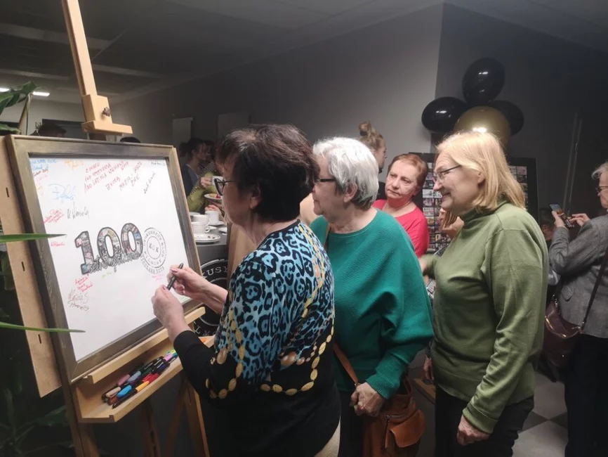 Podczas setnego spotkania przypomniano tytuły wszystkich filmów, jakie wyświetlono w KOK, były balony, życzenia, rozmowy, pamiątkowe fotografie z klubowiczami, niespodzianki i tort dla wszystkich, który kroił i rozdawał kinomanom burmistrz Piotr Ruszkiewicz.
