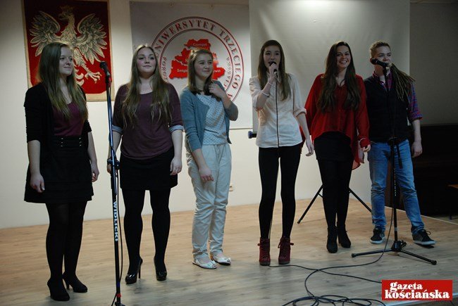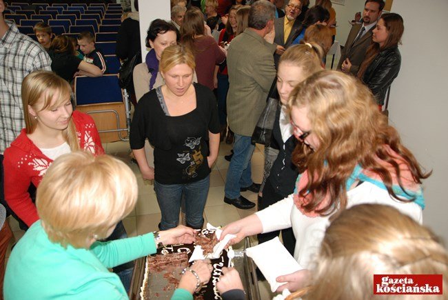 W części artystycznej zaprezentowali się śpiewający wolontariusze. Dominika Bobrowska wykonała ,,My phylosophy’’, Agata Sroka - ,,Czas nie będzie na nas czekał’’, Krzysztof Michalak - ,,Do kołyski’’, Ewa Kręgielska - ,,Rzeka marzeń’’. Na finał piosenkę ,,Wiara czyni cuda’’ zaśpiewał sześcioosobowy zespół Wolontario. Potem nadszedł czas na pokrojenie jubileuszowego tortu. Serwowano też kanapki, słodycze i gorące napoje. (kar)
