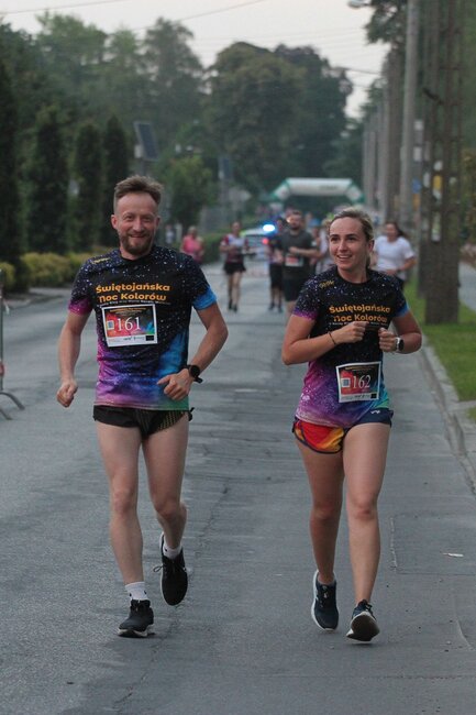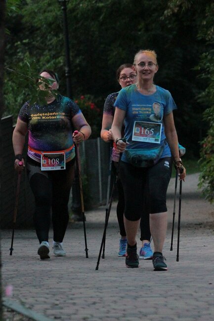 Nocny Bieg oraz Marsz Nordic Walking odbył się po raz piąty. Po raz pierwszy jednak pod hasłem “Świętojańska Noc Kolorów” i po raz pierwszy z patronem - Tomaszem Frąckowiakiem - współorganizatorem poprzednich edycji biegu, który zmarł w styczniu ubiegłego roku. Hołd zmarłemu oddali m.in. koledzy i koleżanki z pracy którzy wystartowali w zawodach w koszulkach z jego zdjęciem.