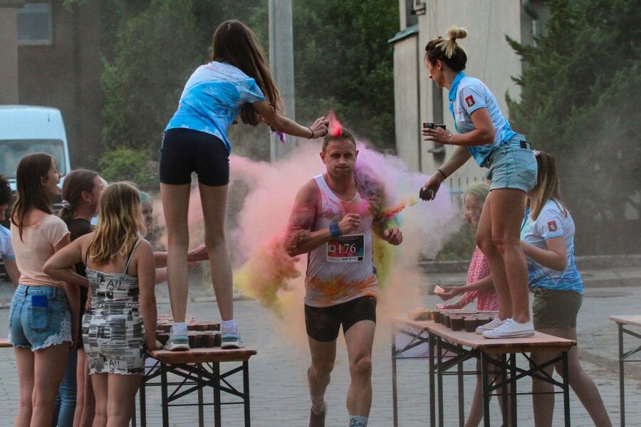 Dystans 5 i 10 kilometrów zawodnicy pokonywali ulicami Śmigla - zarówno po asfalcie jak i przełajowej nawierzchni. Kto zdecydował się przebiec przez strefę kolorów pokonywał nieco krótszy dystans, ale był obsypywany kolorowymi proszkami holi. Na tę opcję zdecydowała się większość uczestników.