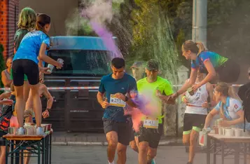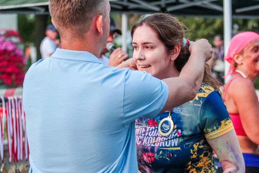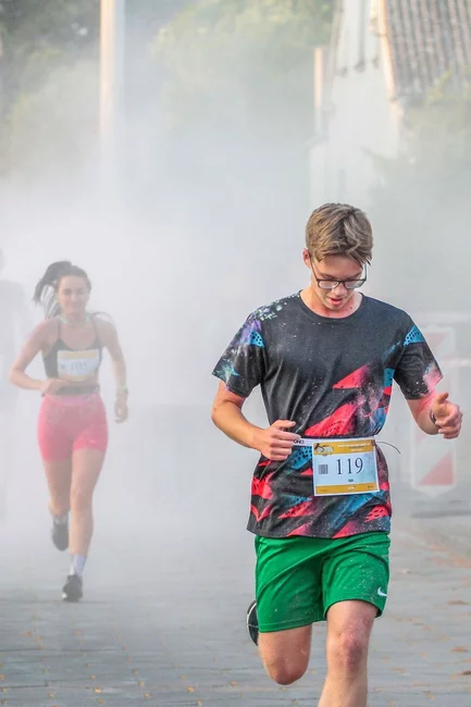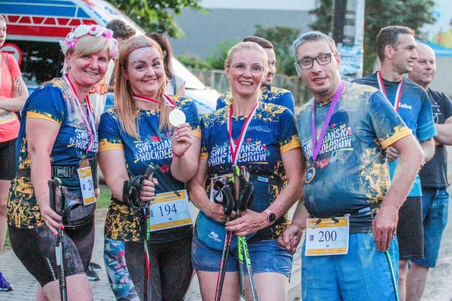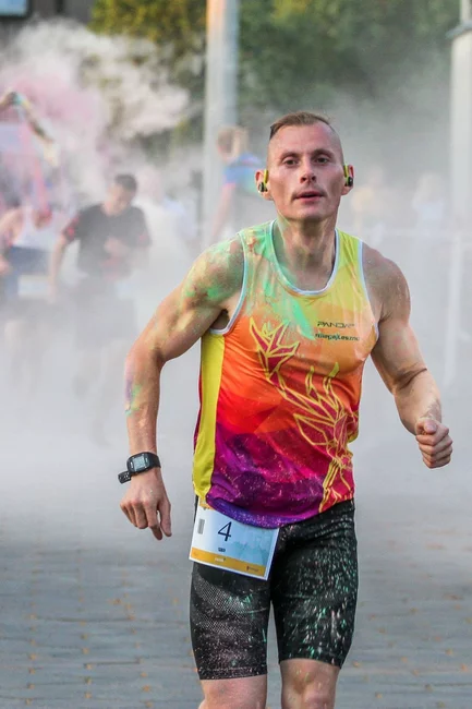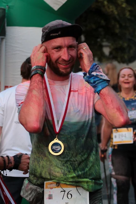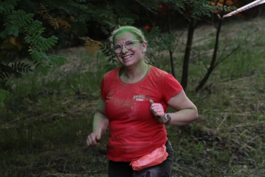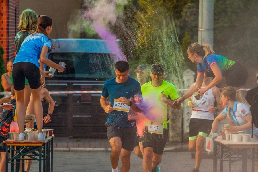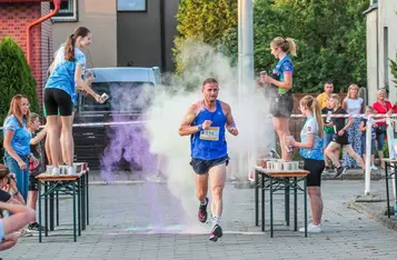 Nie zabrakło również strefy kolorów. Kto zdecydował się przez nią przebiec, pokonywał nieco krótszy dystans, ale w zamian za to został obsypany kolorowymi proszkami holi. Na tę opcję zdecydowała się większość uczestników.