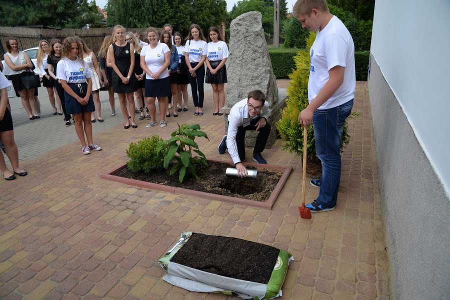Na pamiątkę uroczystości przed szkołą posadzono drzewko ekonomistów, czyli tuję, pod którą zakopano kapsułę czasu. Zamknięto w niej: podpisane zdjęcia, monety z 2018 r. i pamiątki z poniedziałkowej uroczystości.