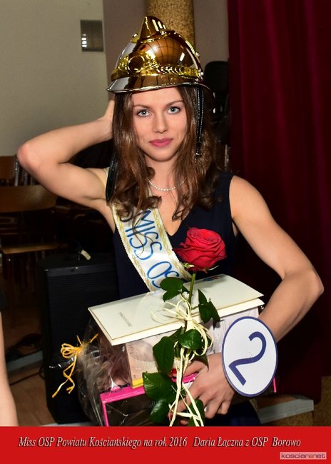 Miss OSP powiatu kościańskiego została 18-letnia Daria Łączna z OSP Borowo. W tym roku najpiękniejszą ochotniczkę wybierano już po raz czternasty. W konkursowe szranki stanęły tylko cztery kandydatki. Uczestniczki zaprezentowały się w strojach strażackich i w sukienkach oraz odpowiadały na pytania z wiedzy pożarniczej. Bezkonkurencyjna okazała się 18-letnia Daria Łączna z OSP w Borowie. Tytuł pierwszej wicemiss zdobyła Aleksandra Migdałek z OSP Głuchowo, która wywalczyła tytuł miss publiczności. Natomiast drugą wicemiss zostały ex aequo ochotniczki z OSP Turew: Monika Gołembka i Anna Skorupska.