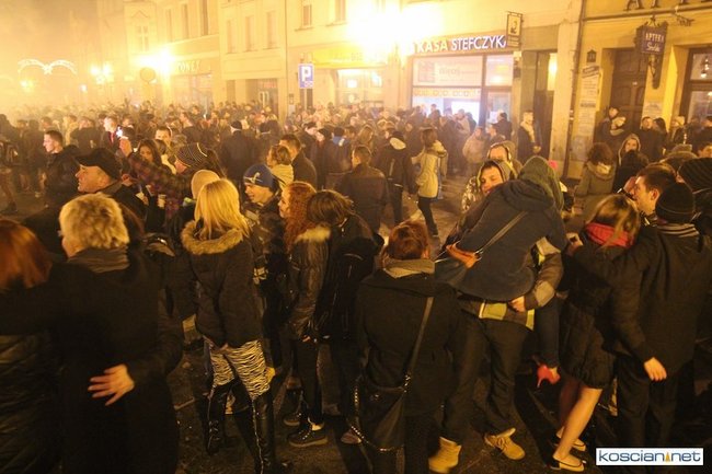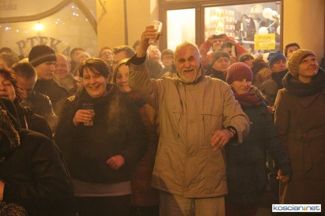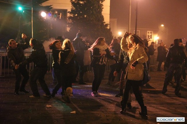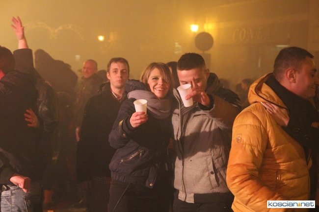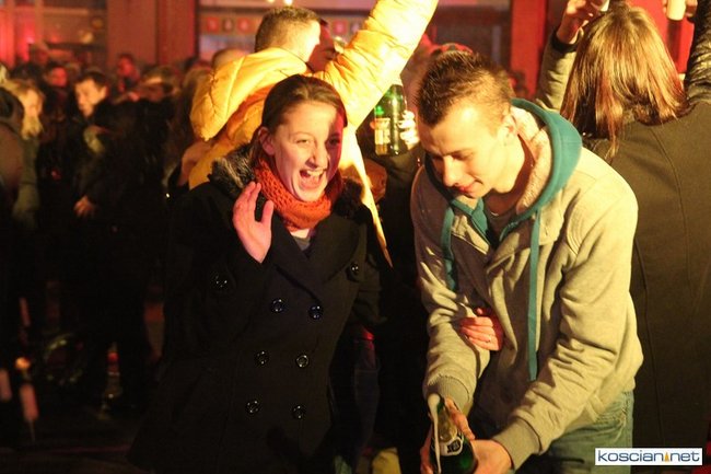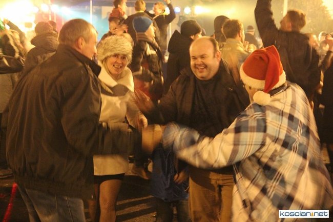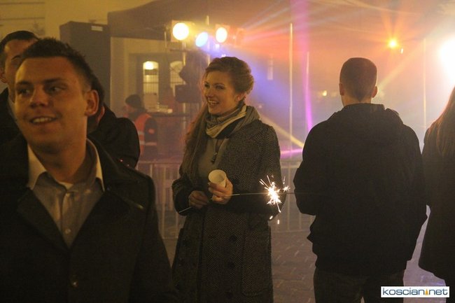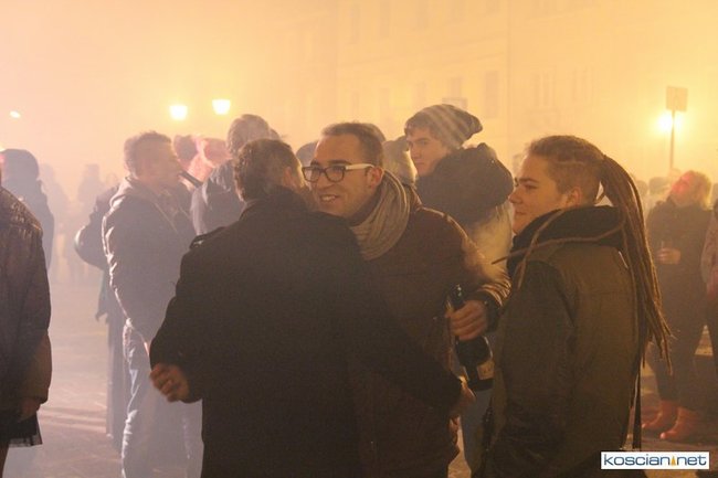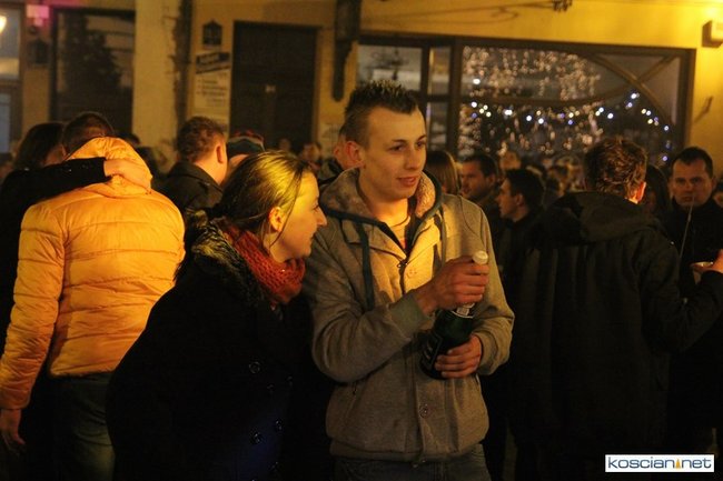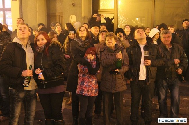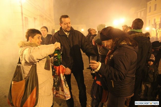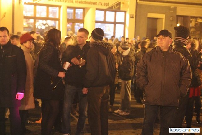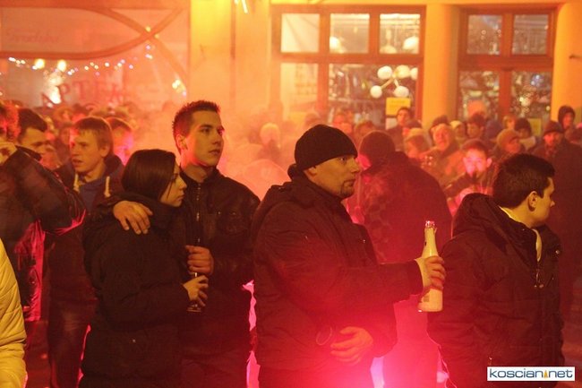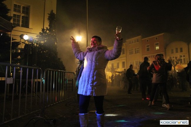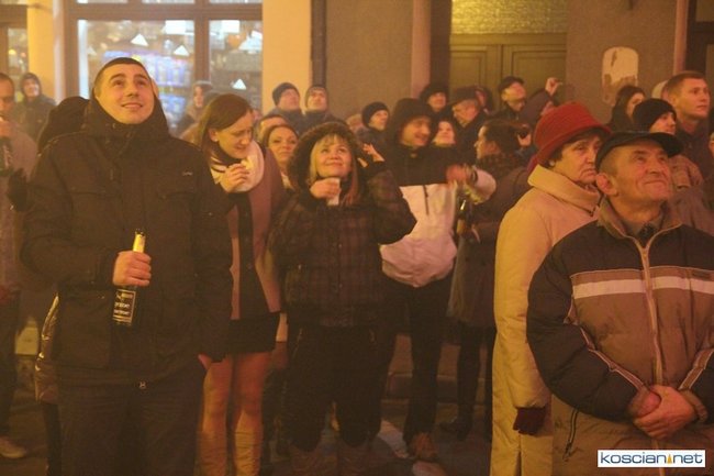 Tradycyjnie na kościańskim rynku spotkały się osoby chcące wspólnie przywitać Nowy Rok. Po życzeniach złożonych przez burmistrza i przewodniczącego miejskiej rady, poszybowały w niebo fajerwerki. Na chwilę rynek zamienił się w wielki parkiet taneczny.