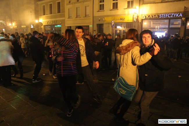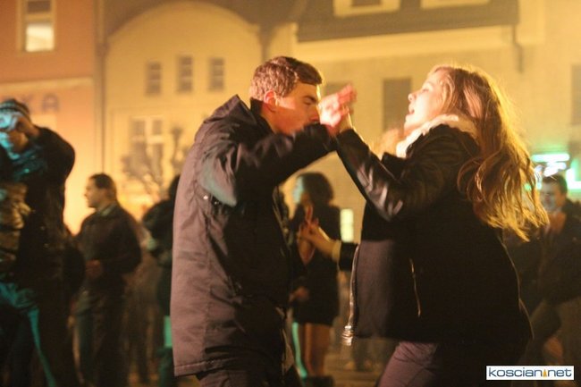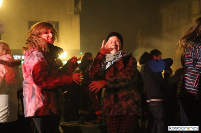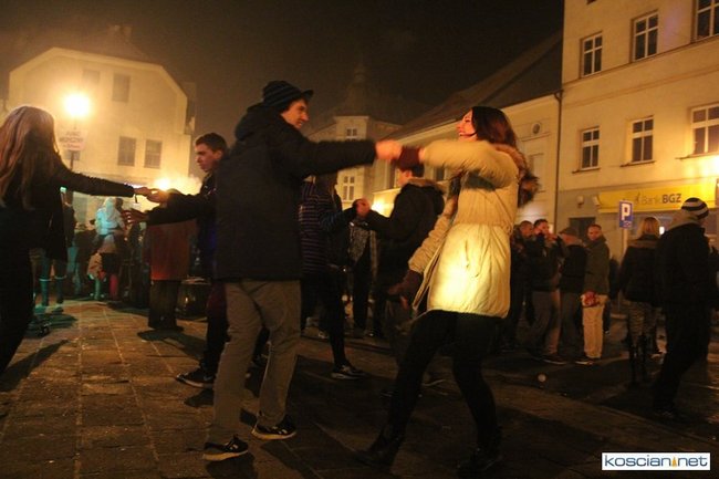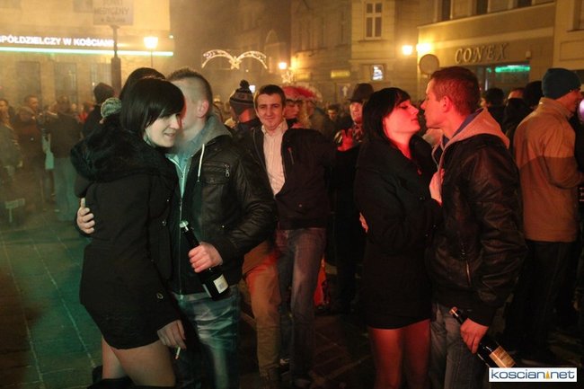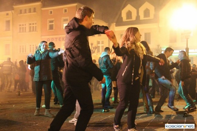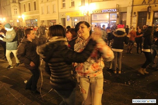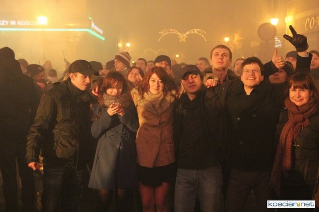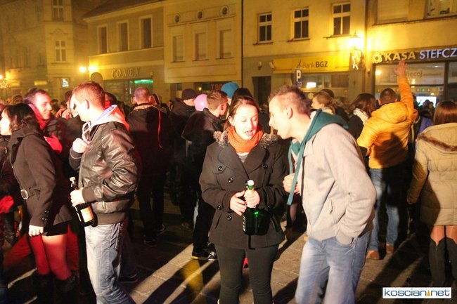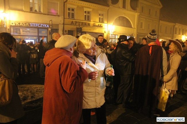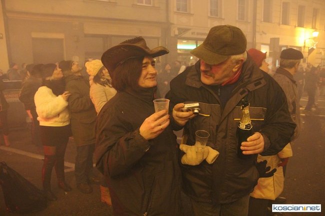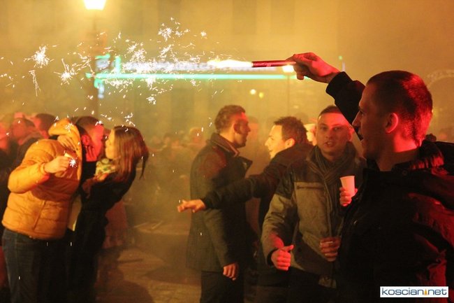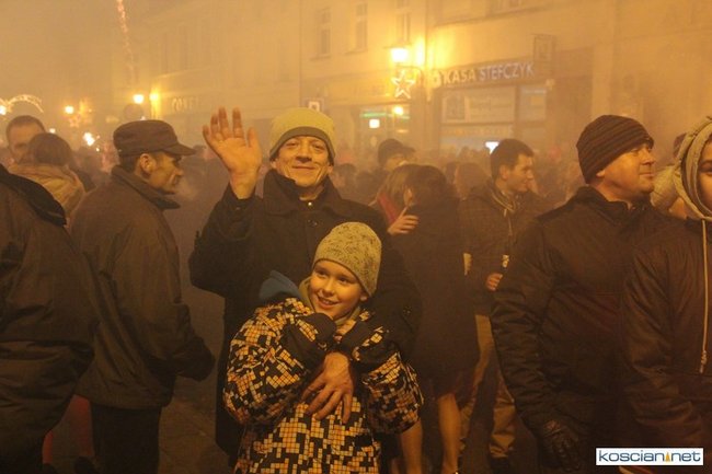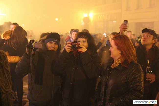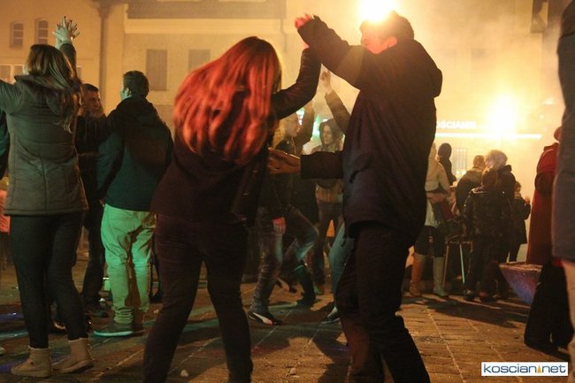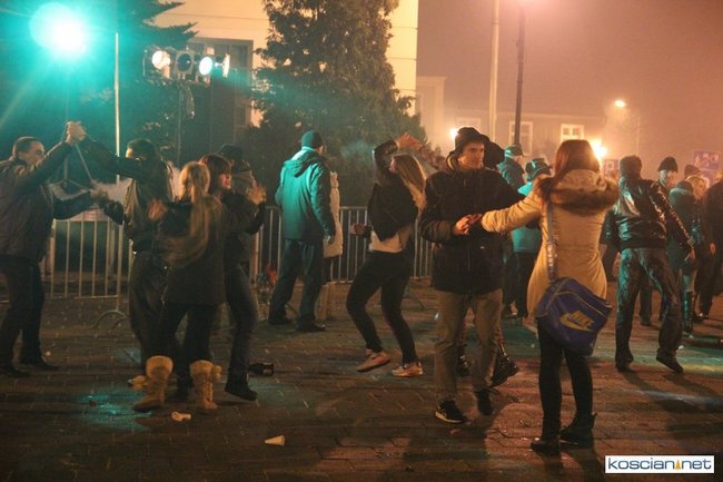 Tradycyjnie na kościańskim rynku spotkały się osoby chcące wspólnie przywitać Nowy Rok. Po życzeniach złożonych przez burmistrza i przewodniczącego miejskiej rady, poszybowały w niebo fajerwerki. Na chwilę rynek zamienił się w wielki parkiet taneczny.