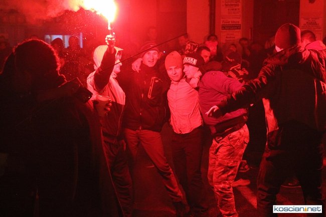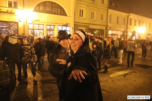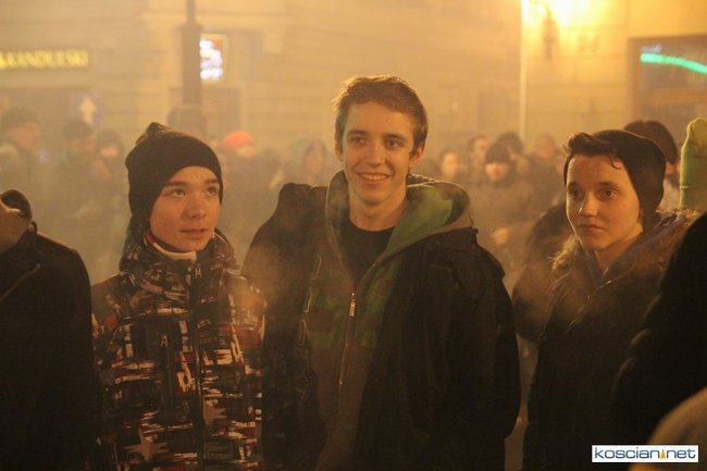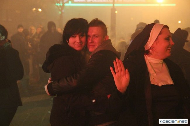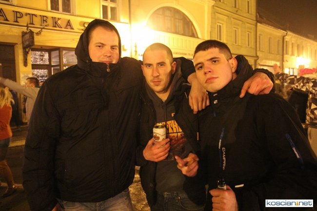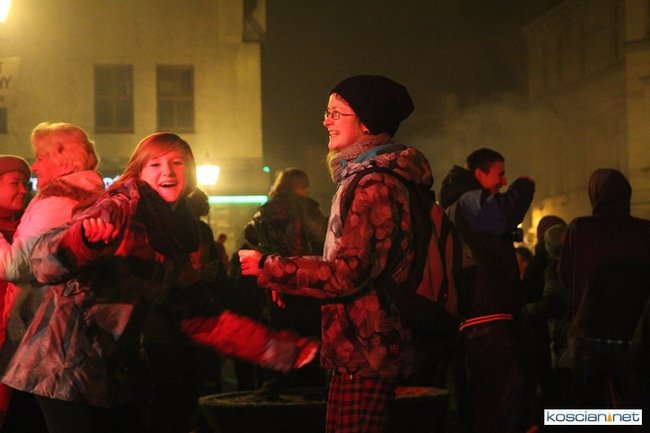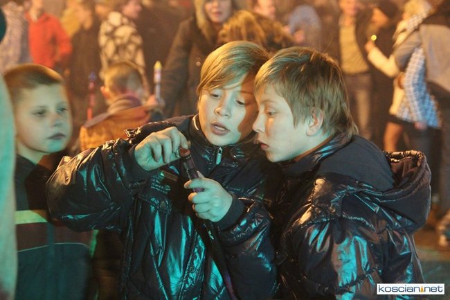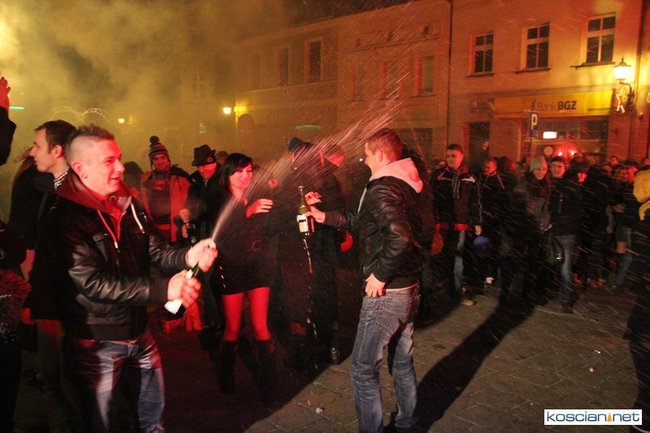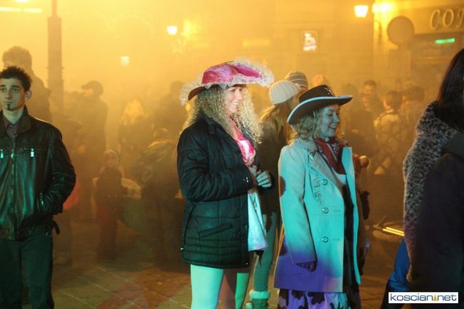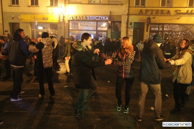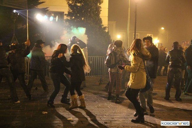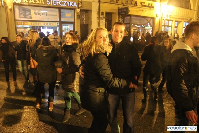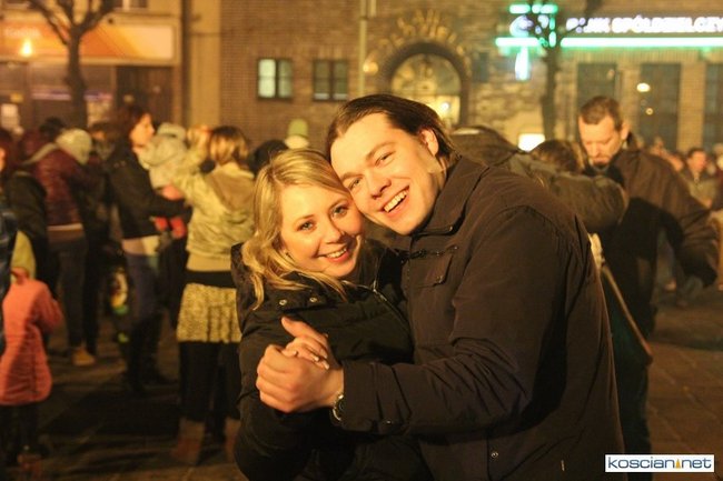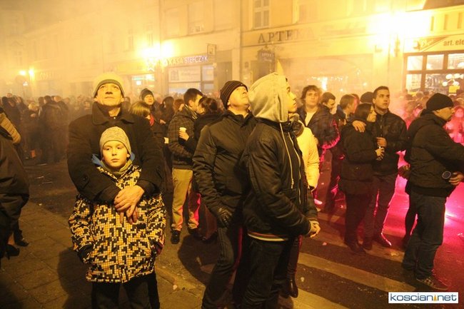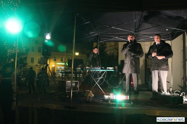 Tradycyjnie na kościańskim rynku spotkały się osoby chcące wspólnie przywitać Nowy Rok. Po życzeniach złożonych przez burmistrza i przewodniczącego miejskiej rady, poszybowały w niebo fajerwerki. Na chwilę rynek zamienił się w wielki parkiet taneczny.