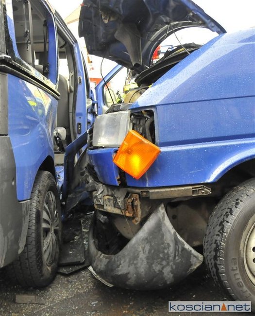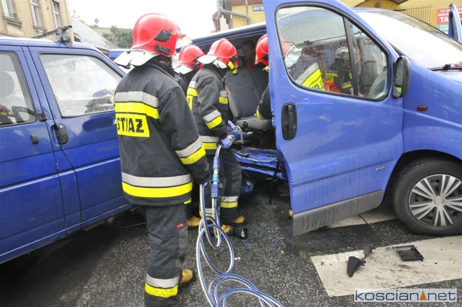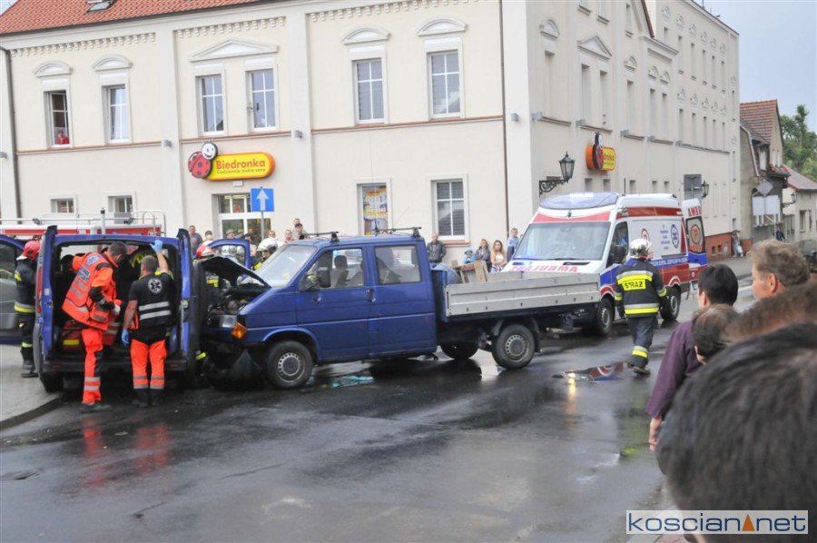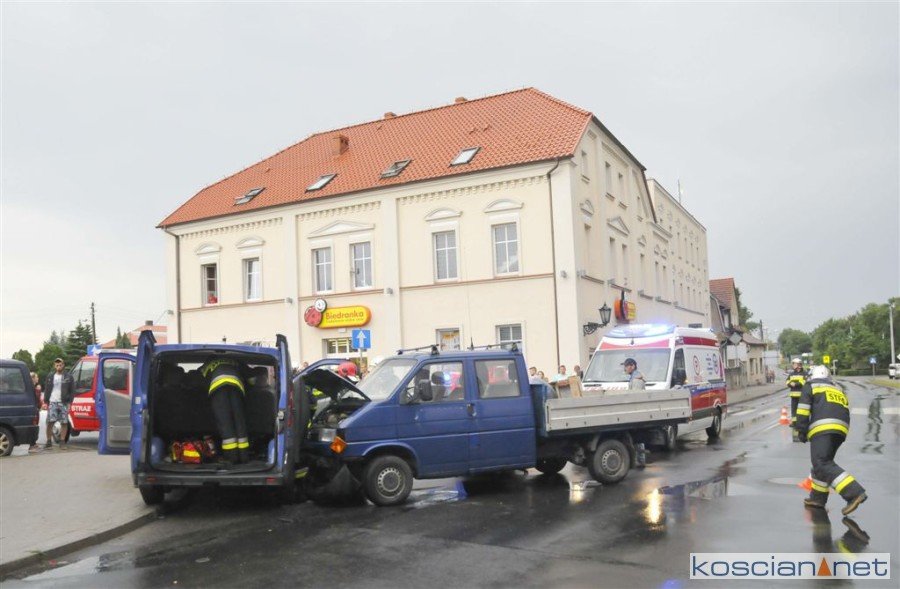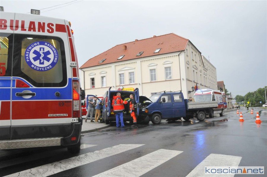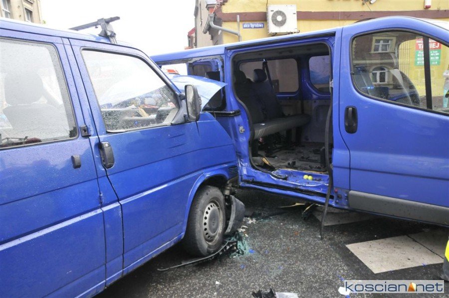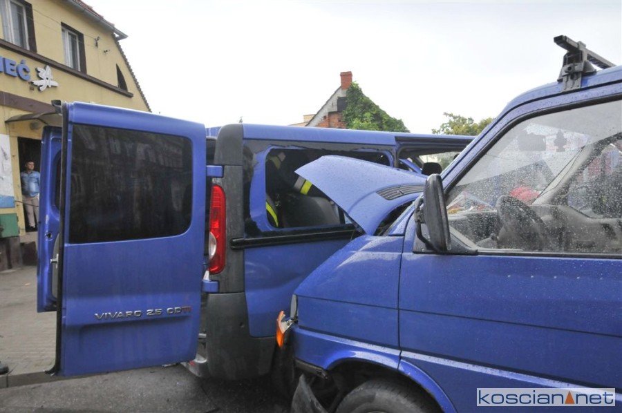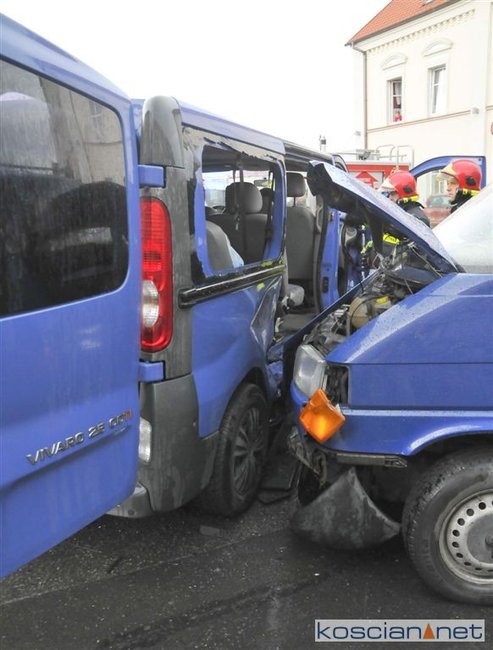 Do zdarzenia doszło około godziny 17.30 na skrzyżowaniu ul. Leszczyńskiej i Mickiewicza w Śmiglu. Zderzyły się opel vivaro i volkswagen t4, którymi podróżowało łącznie siedem osób. Jedną z nich strażacy musieli wydobyć z pojazdu przy użyciu sprzętu hydraulicznego. Sześcioro poszkodowanych przewieziono na badania do szpitali w Kościanie i Lesznie. Przyczyny i okoliczności zderzenia aut ustala policja.