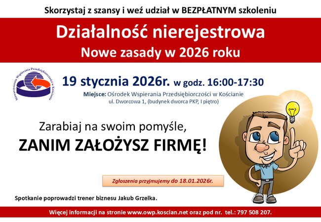 Szkolenie „Działalność nierejestrowa. Nowe zasady w 2026 roku”.